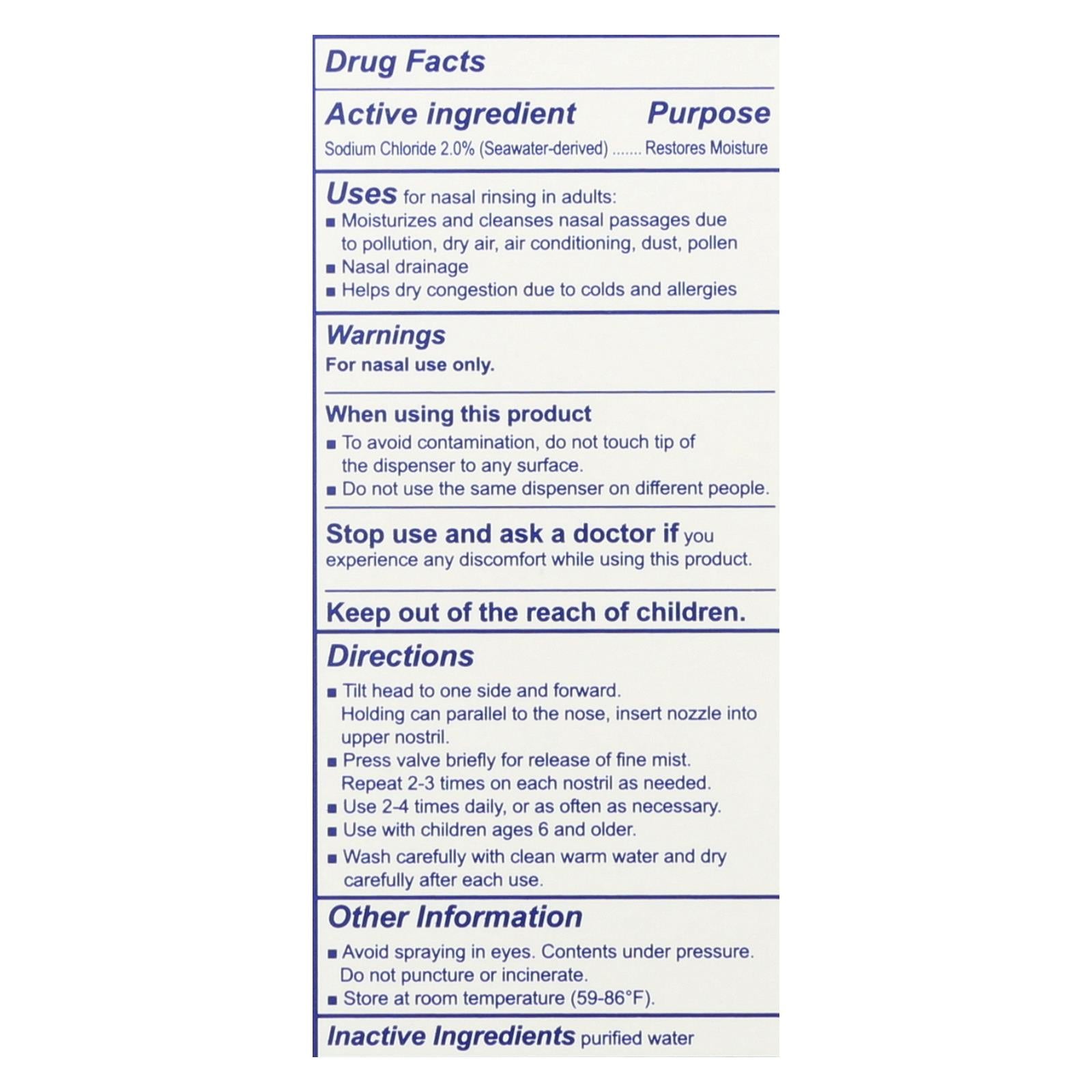 ingredients : active ingredient sodium chloride 2.0%;seawater-derived;purpose restores moisture inactive purified water