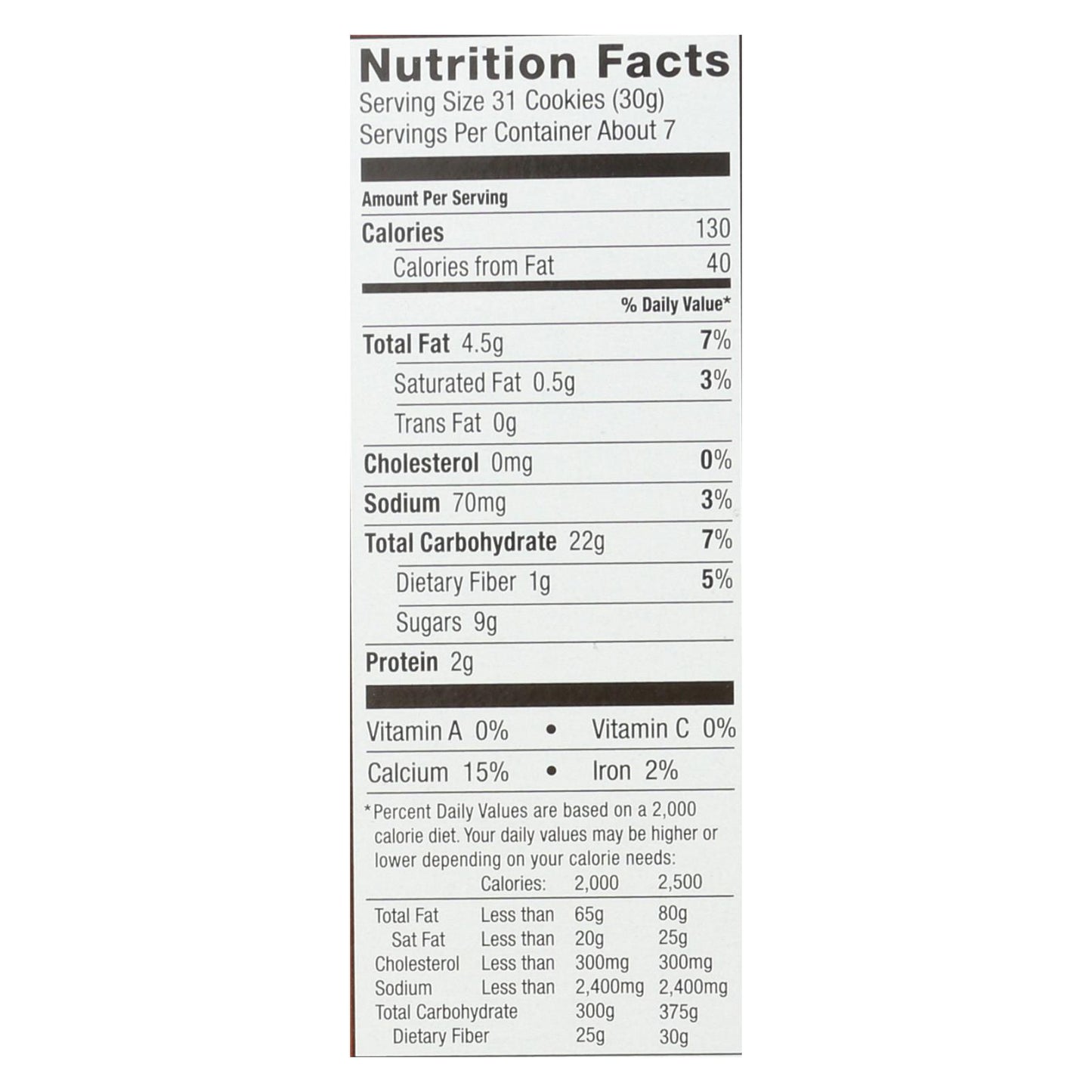 ingredients : best organic wheat flour;organic cane sugar;organic expeller-pressed sunflower oil;organic invert cane syrup;organic whole wheat flour (graham flour);organic cocoa powder;organic semi-sweet chocolate chips (organic unsweetened chocolate, organic cocoa butter, organic vanilla extract);calcium carbonate;natural flavor;baking soda;sea salt;mixed tocopherols (vitamin e) to protect flavor