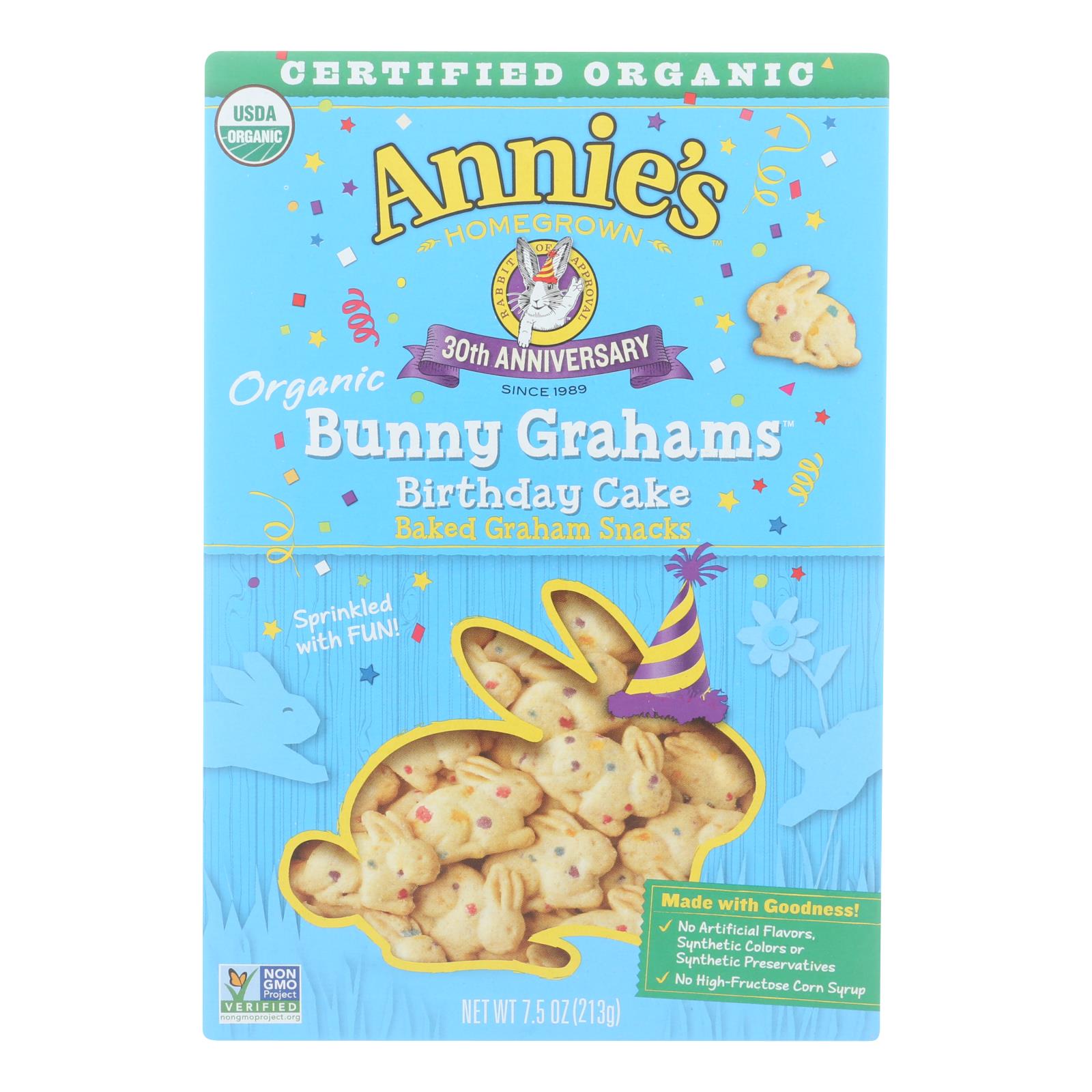 Annie's Organic Birthday Cake Bunny Grahams - Case Of 12 - 7.5 Oz