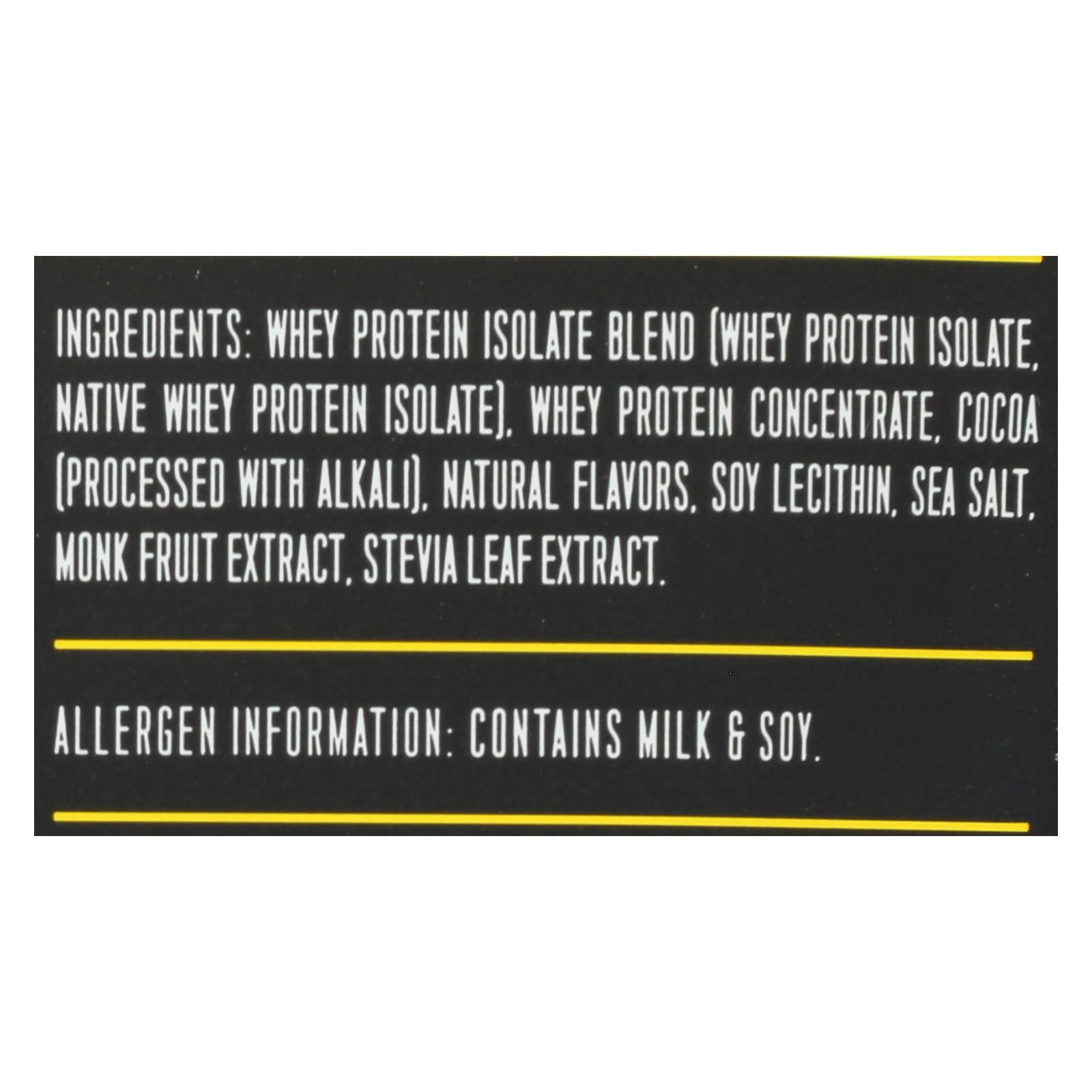 ingredients : whey protein isolate blend;native whey protein isolate;whey protein isolate;whey protein concentrate;cocoa;processed with alkali;natural flavors;sunflower lecithin;sea salt;monk fruit extract;stevia leaf extract