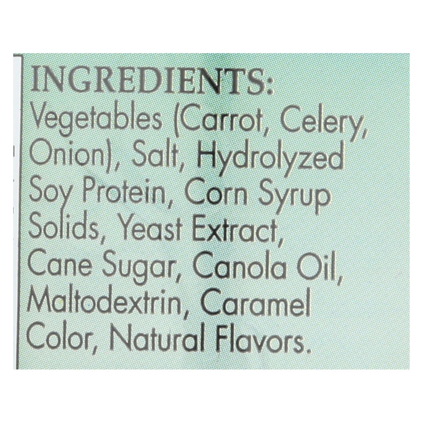 ingredients : vegetables (carrot, celery, onion), salt, hydrolyzed soy protein, corn syrup solids, yeast extract, cane sugar, canola oil, maltodextrin, caramel color, natural flavors.