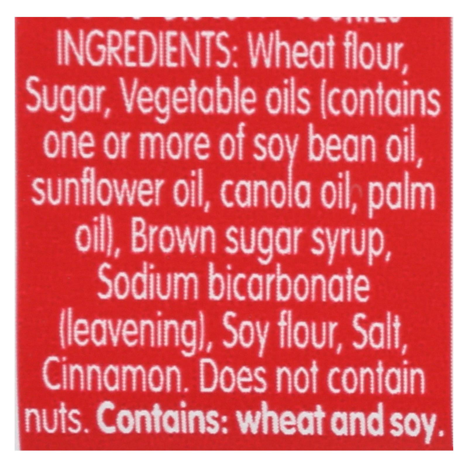 ingredients : wheat flour;sugar;vegetable oils;contains one or more of soy bean oil;sunflower oil;canola oil;palm oil;brown sugar syrup;sodium bicarbonate;leavening;soy flour;salt;cinnamon