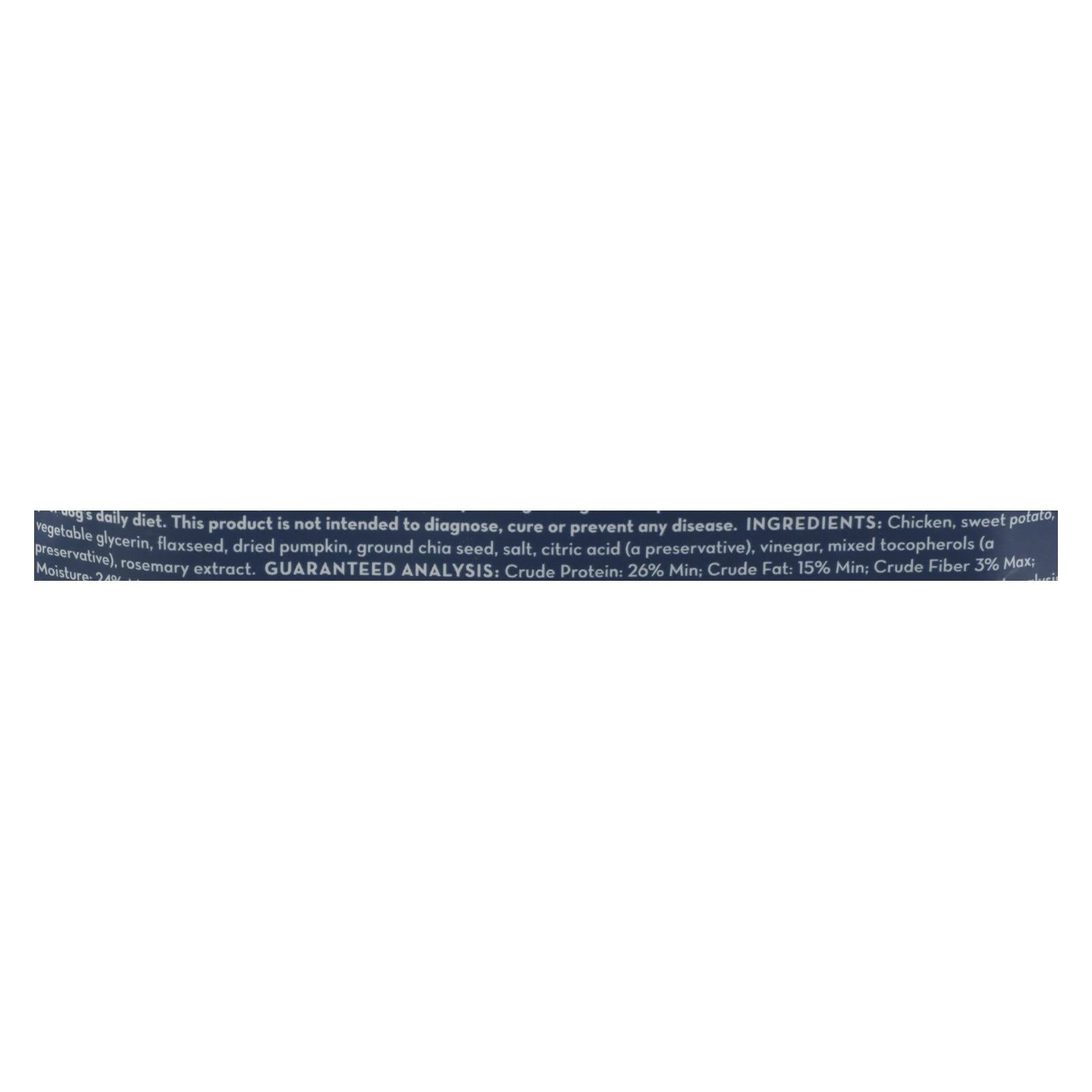 ingredients : chicken;sweet potato;vegetable glycerin;ground flaxseed;ground chia seed;dried pumpkin;salt;citric acid (a preservative);vinegar;mixed tocopherols (a preservative);rosemary extract
