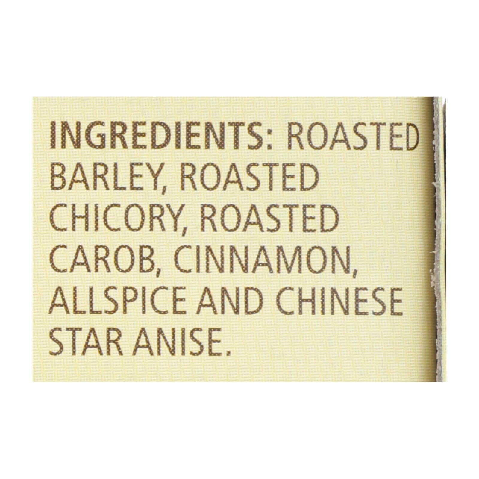 ingredients : roasted barley;roasted chicory;roasted carob;cinnamon;allspice and chinese star anise