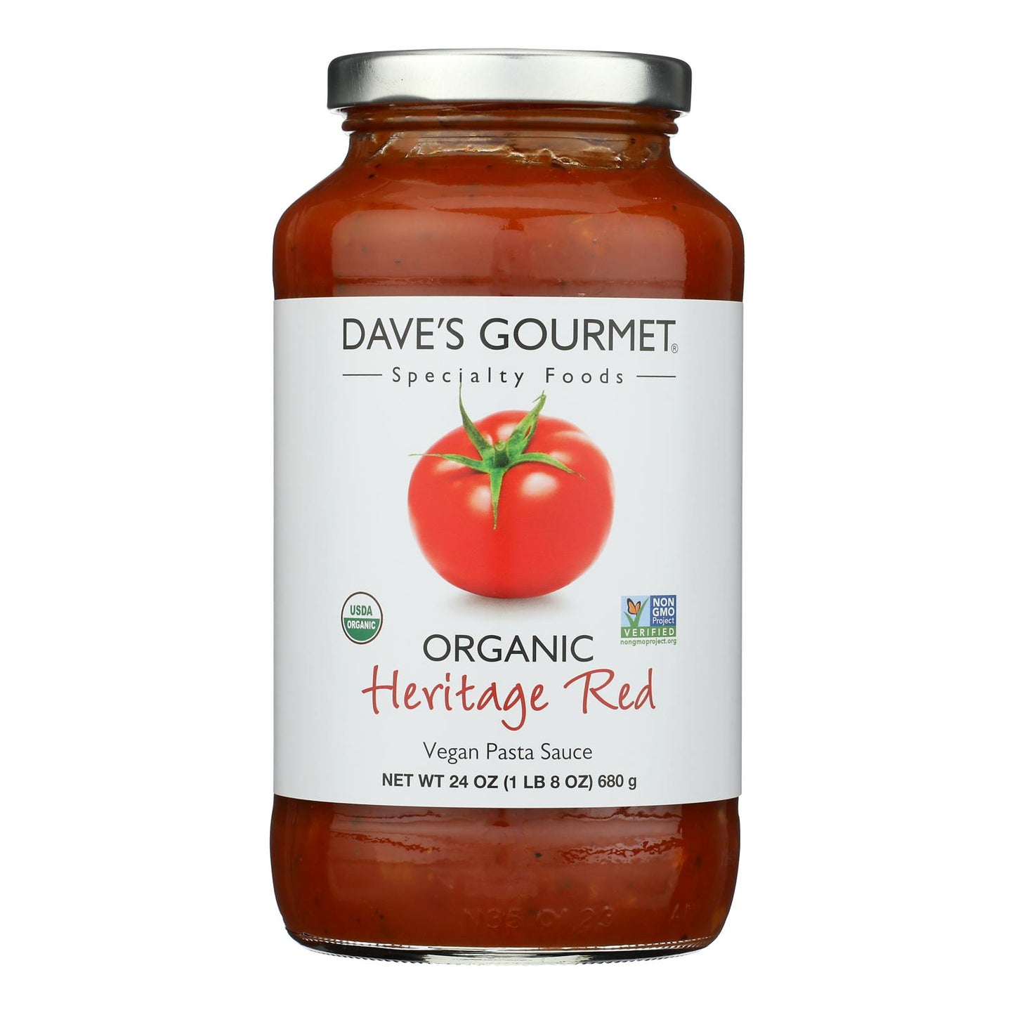 Dave's gourmet pasta sauce, organic red heirloom is made with organic vine-ripened tomatoes, premium california garlic, extra-virgin olive oil and fresh herbs. These ingredients combine to create a delicious sauce that is light, fresh and bursting with flavor. This pasta sauce is gluten-free, non-gmo and vegan. Each jar of dave's gourmet pasta sauce, organic red heirloom contains 25.5 oz. Of product.