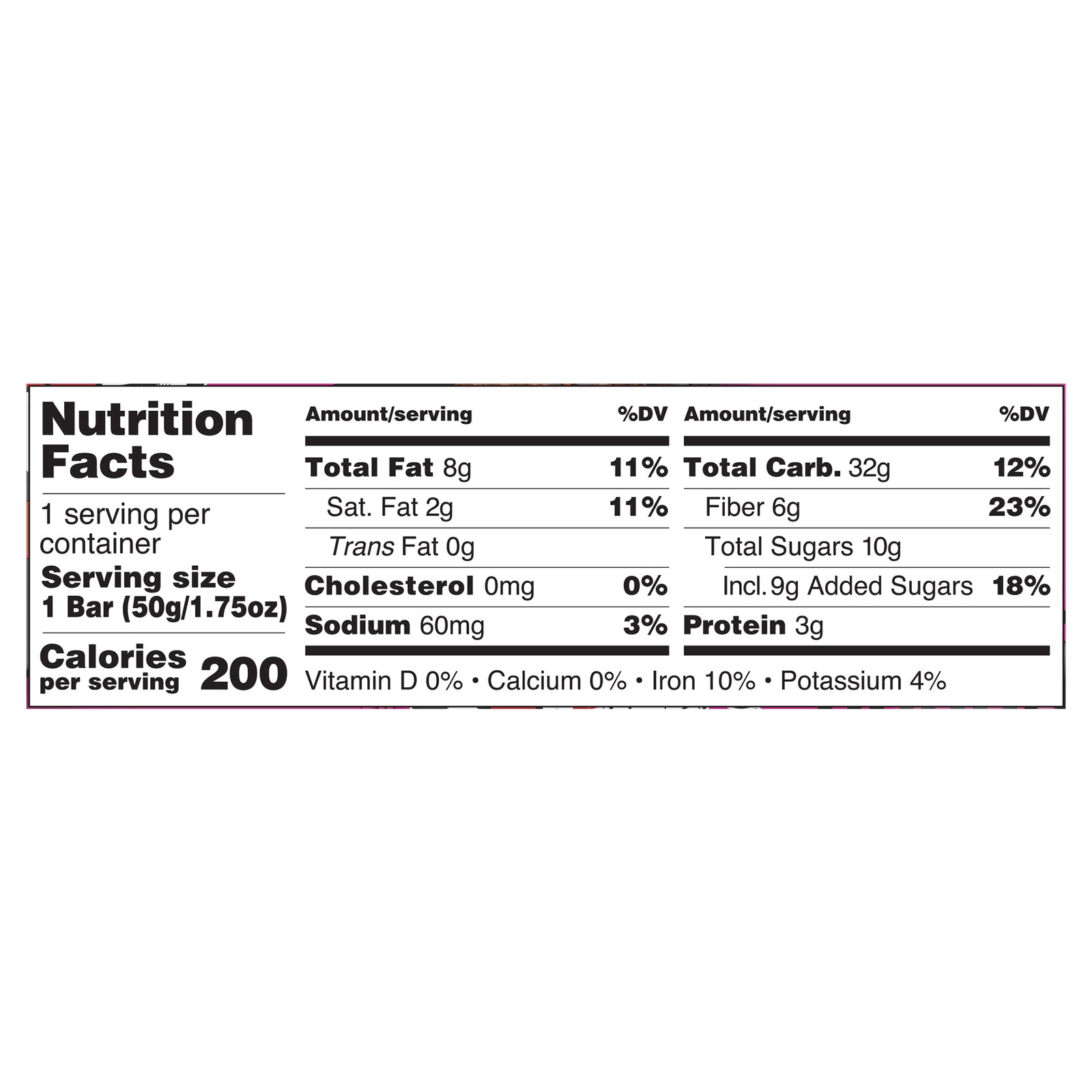 ingredients : organic whole wheat flour;organic brown rice syrup;organic rolled oats;organic cane sugar;organic agave fiber (inulin);organic vegetable oil (sunflower and/or expeller pressed canola oil);water;organic semi-sweet chocolate (organic cane sugar, organic unsweetened chocolate, organic cocoa butter, organic soy lecithin, organic natural flavor);organic malt extract;organic palm oil;organic cocoa;organic whole oat flour;contains less than 2% of each of the following: organic corn starch, organic tapi