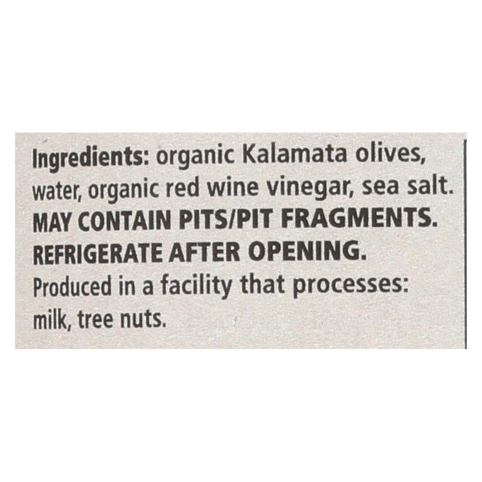 ingredients : organic kalamata olives;water;organic red wine vinegar;sea salt
