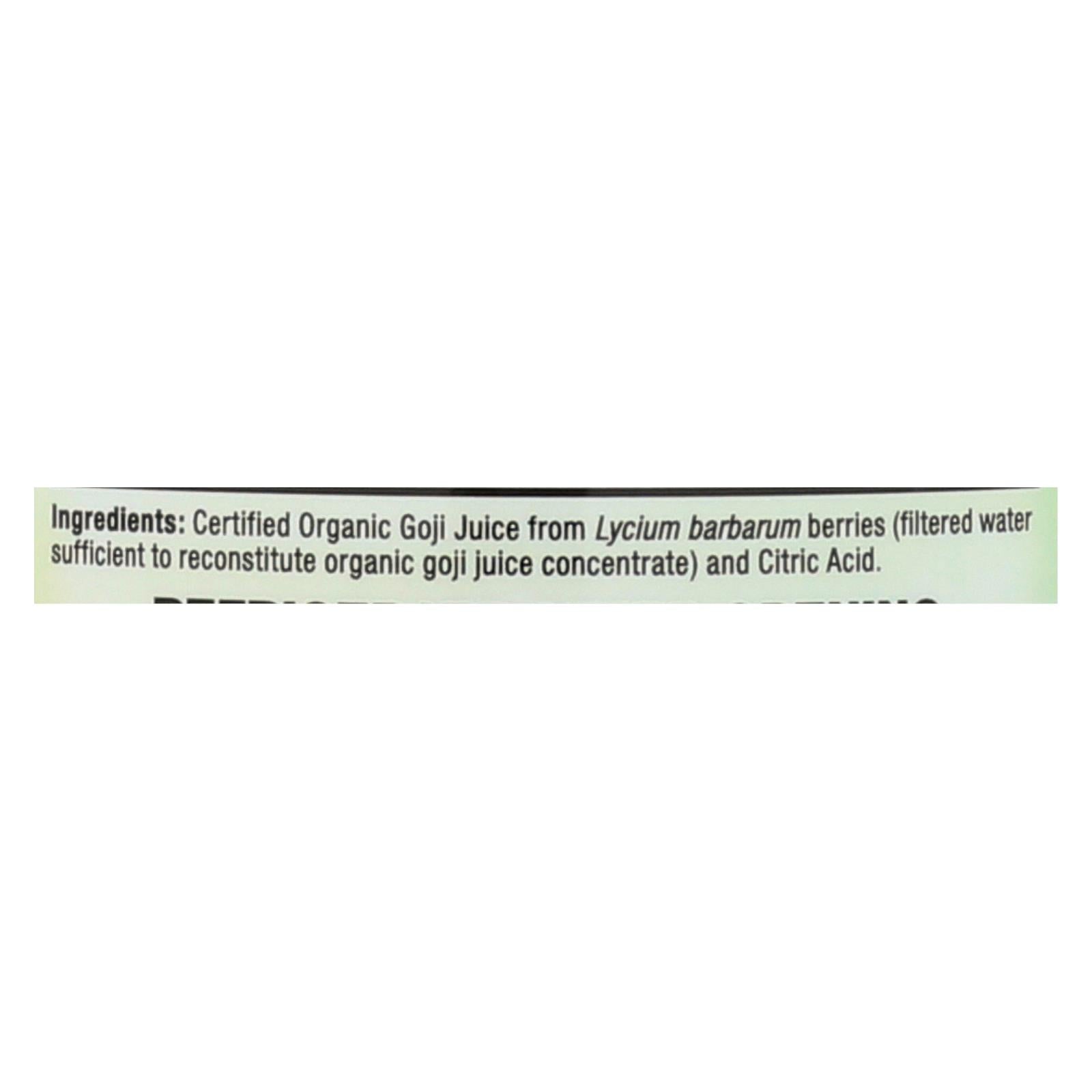 ingredients : certified organic goji juice from lycium barbarum berries;filtered water sufficient to reconstitute organic goji juice concentrate;and citric acid