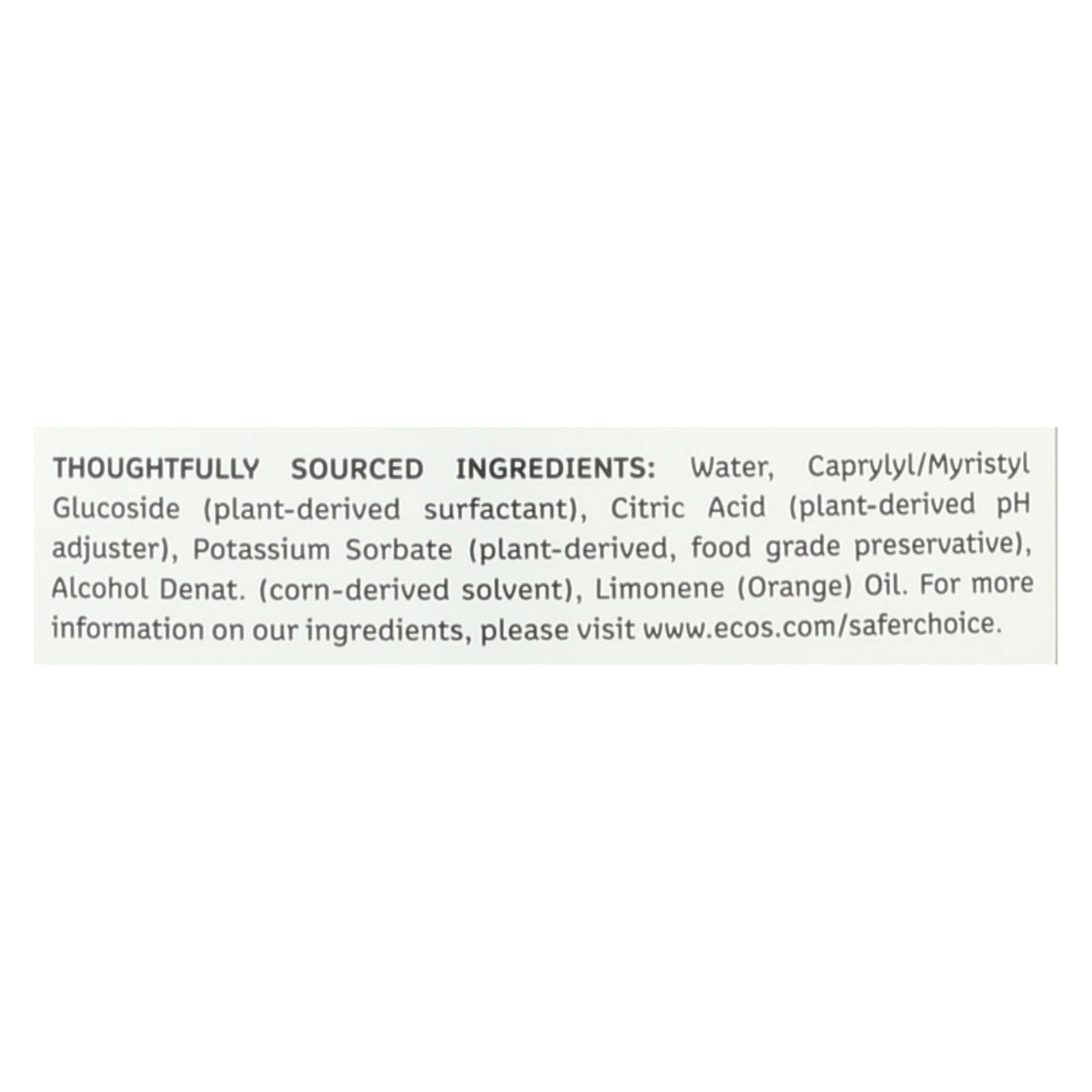 Ecos all purpose cleaner, orange plus is extraordinarily effective at cleaning everyday dirt and grease from hard surfaces with thoughtfully sourced ingredients. Citrus brings an essence of vitality that smells great and adds grease-cutting strength. This product comes in a 22 fl. Oz. Bottle and allows you to tidy up fast with the grease-cutting power of citrus. This cleaner is made without dyes, parabens, phosphates and phthalates. It’s also readily biodegradable, ph balanced, never tested on animals, it lifts dirt in every room and cleans water-safe surfaces. See the facts label for allergens and warnings.
