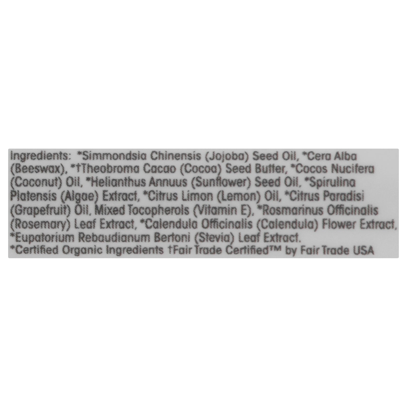 Nutrient-dense organic lip balm. Usda organic. Certified organic by oregon tilth. Www.tilth.org. Gluten free. Purifies and hydrates to soothe the lips. Fair trade certified ingredient. 20% fair trade certified ingredients. Www.ecolips.com. Certified b corporation. Cruelty free. 100% renewable offset with sustainable power. Made in usa.