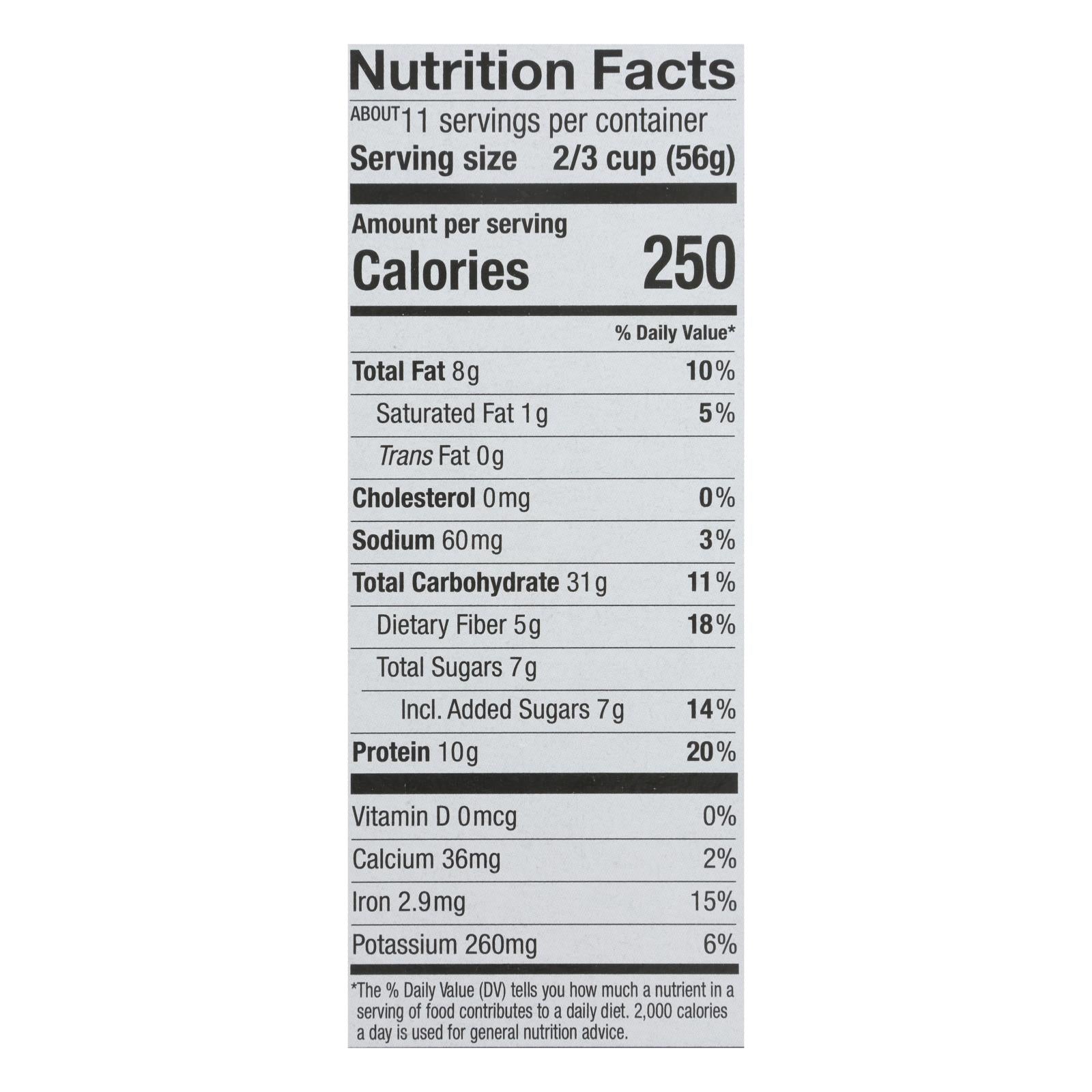 ingredients : whole grain rolled oats;whole wheat flakes;plant-based protein crispies (pea protein, wheat protein, tapioca starch);sugar;sunflower oil;sunflower seeds;puffed whole wheat;flax-seeds;honey;pumpkin seeds;sea salt;natural vanilla flavor