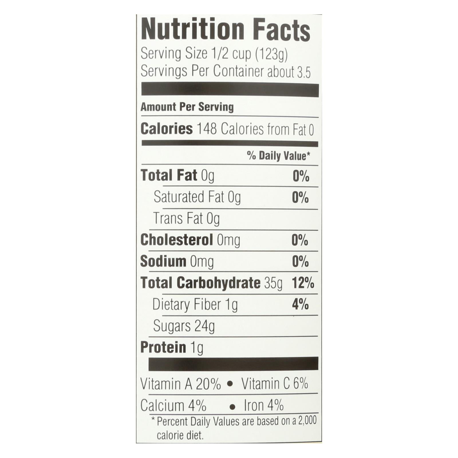 Farmer's market organic pumpkin pie mix is a 100% usda-certified organic product. This mix comes packed in one 15 oz. Can and is verified non-gmo. This certified kosher-parve product contains 0 g. Of trans fat, saturated fat and cholesterol. Each serving has 1 g. Of dietary fiber and just 148 calories.
