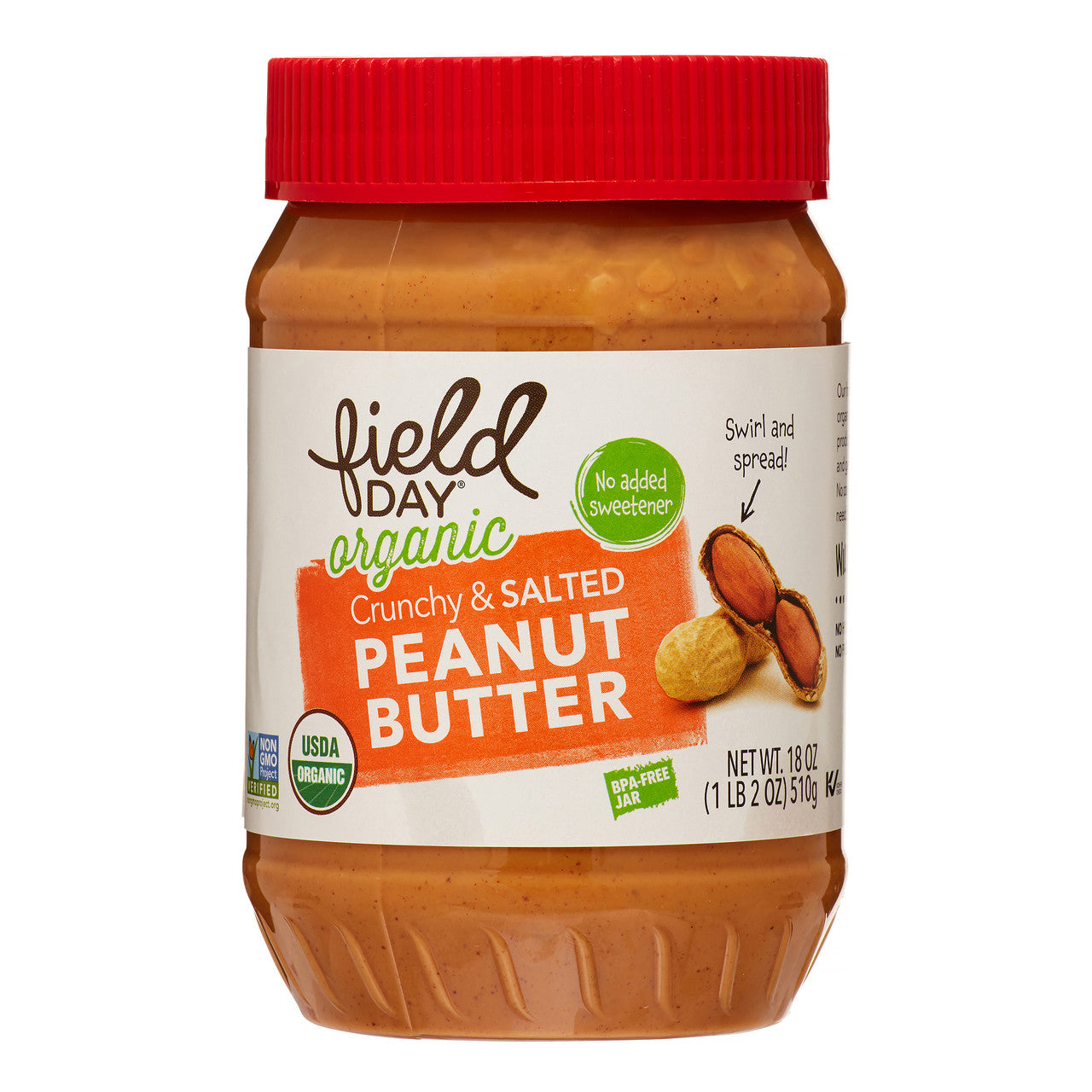Field Day Organic Easy Spread Peanut Butter, Crunchy, Salted (12x18Oz)