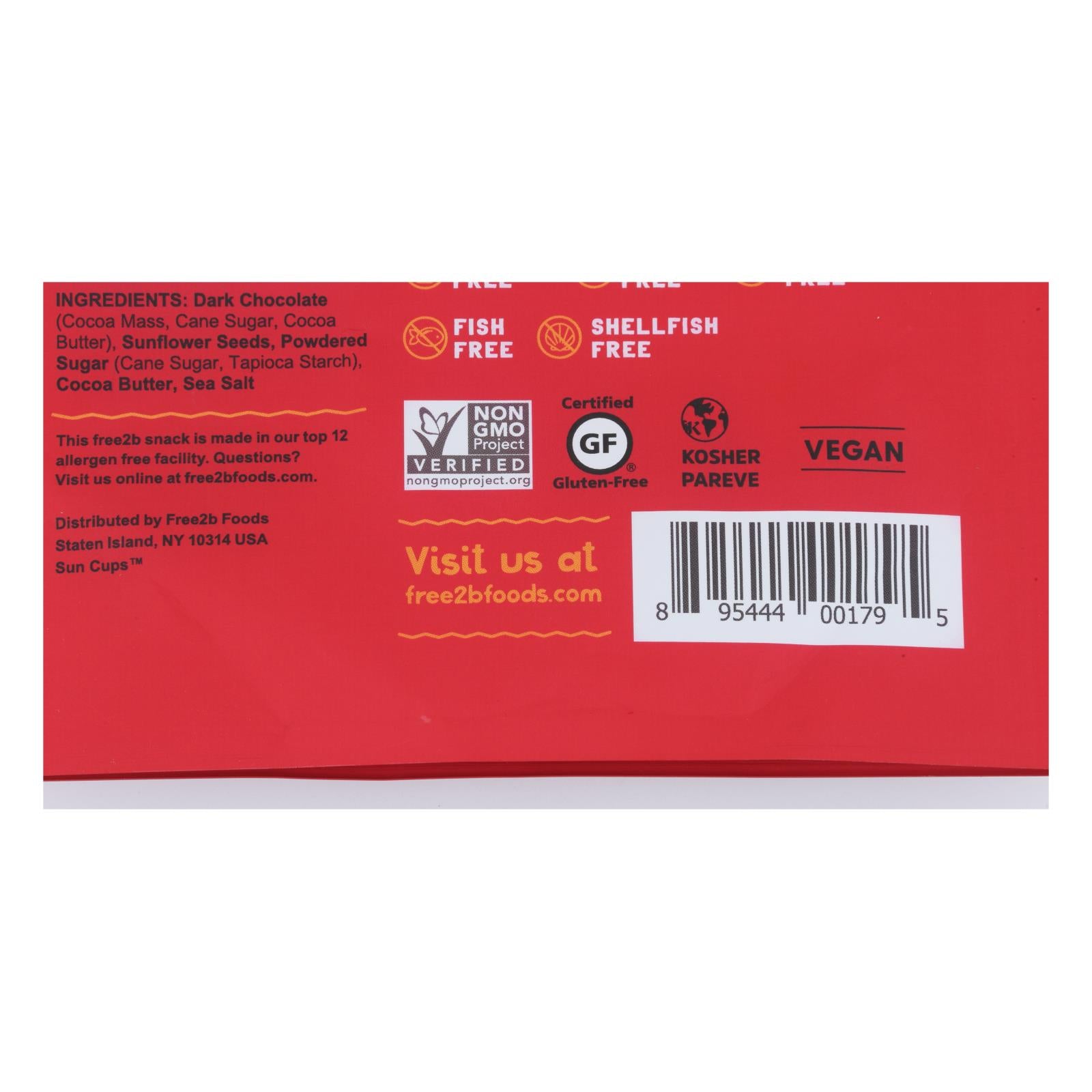 Nut free. Dairy free. Soy free. Certified gluten-free. Gluten free. Peanut free. Tree nut free. Egg free. Corn free. Mustard free. Sesame free. Coconut free. Fish free. Shellfish free. Vegan. Non gmo project verified. Nongmoproject.org. Free from 12 common allergens. Made brilliantly. free2b isn't just our name. It's our delicious way of life. We're committed to crafting snacks that are not only free from the top 12 allergens, but also over-the-top tasty. We believe everyone deserves to eat fearlessly and live brilliantly. this snack is made in our top 12 alergen free facility. Free2bfoods.com. Join the free-from conversation. Twitter. Facebook. Instagram. Visit us at free2bfoods.com. Questinos? visit us online at free2bfoods.com.