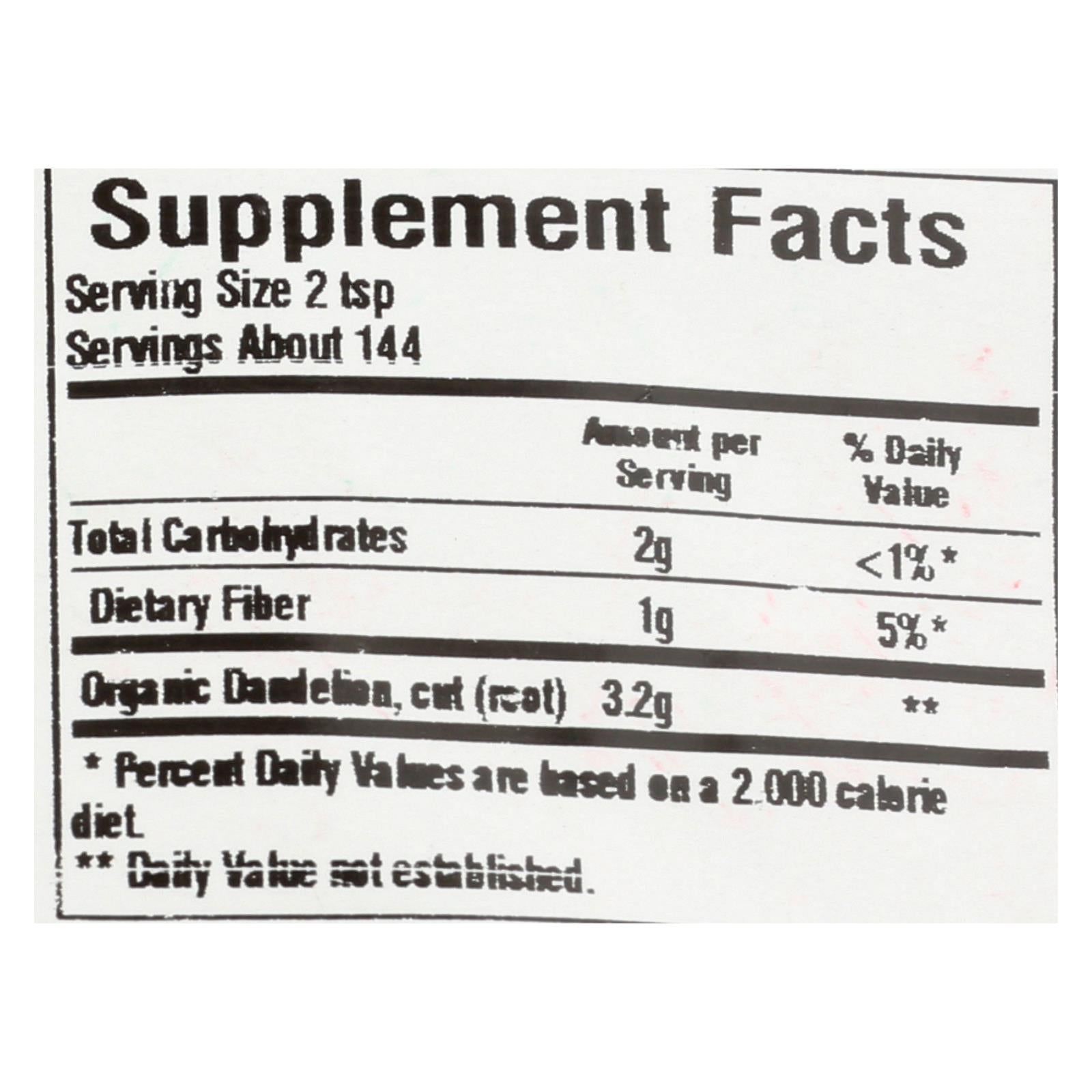 Frontier natural products co-op cut & sifted organic dandelion root is a natural, tasty herbal supplement designed to be added to food in small amounts to add flavor and nutritional value. Full of vitamins and minerals and associated with cleansing action, you can stir the fresh, pre-cut herb from this 16 oz. Bag into salads, meat dishes, stews and even drinks.
