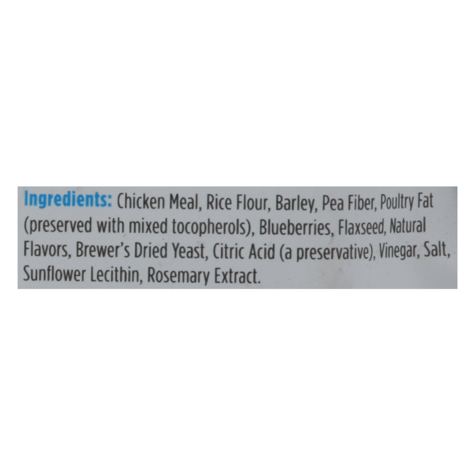 ingredients : chicken meal;rice flour;barley;pea fiber;poultry fat (preserved with mixed tocopherols);blueberries;flaxseed;natural flavors;brewer's dried yeast;citric acid (a preservative);vinegar;salt;sunflower lecithin;rosemary extract