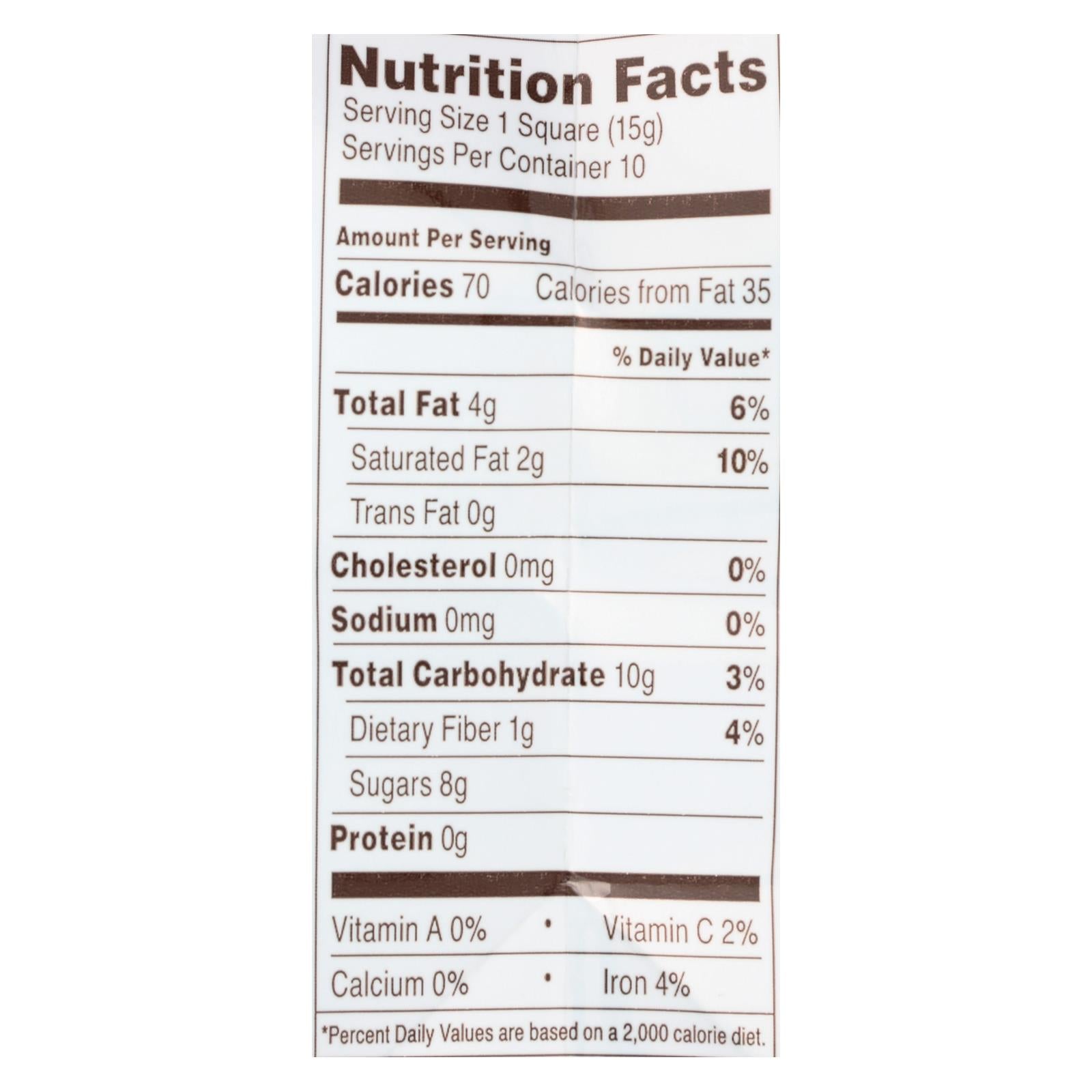 Ghirardelli dark chocolate raspberry squares are a certified kosher-dairy product. This dark chocolate comes in one 5.32 oz. Bag and contains 0 g. Of trans fat and cholesterol. Each serving has 70 calories, 0 mg. Of sodium, 2 g. Of saturated fat and 0 g. Of protein. See nutrition facts panel for allergens.