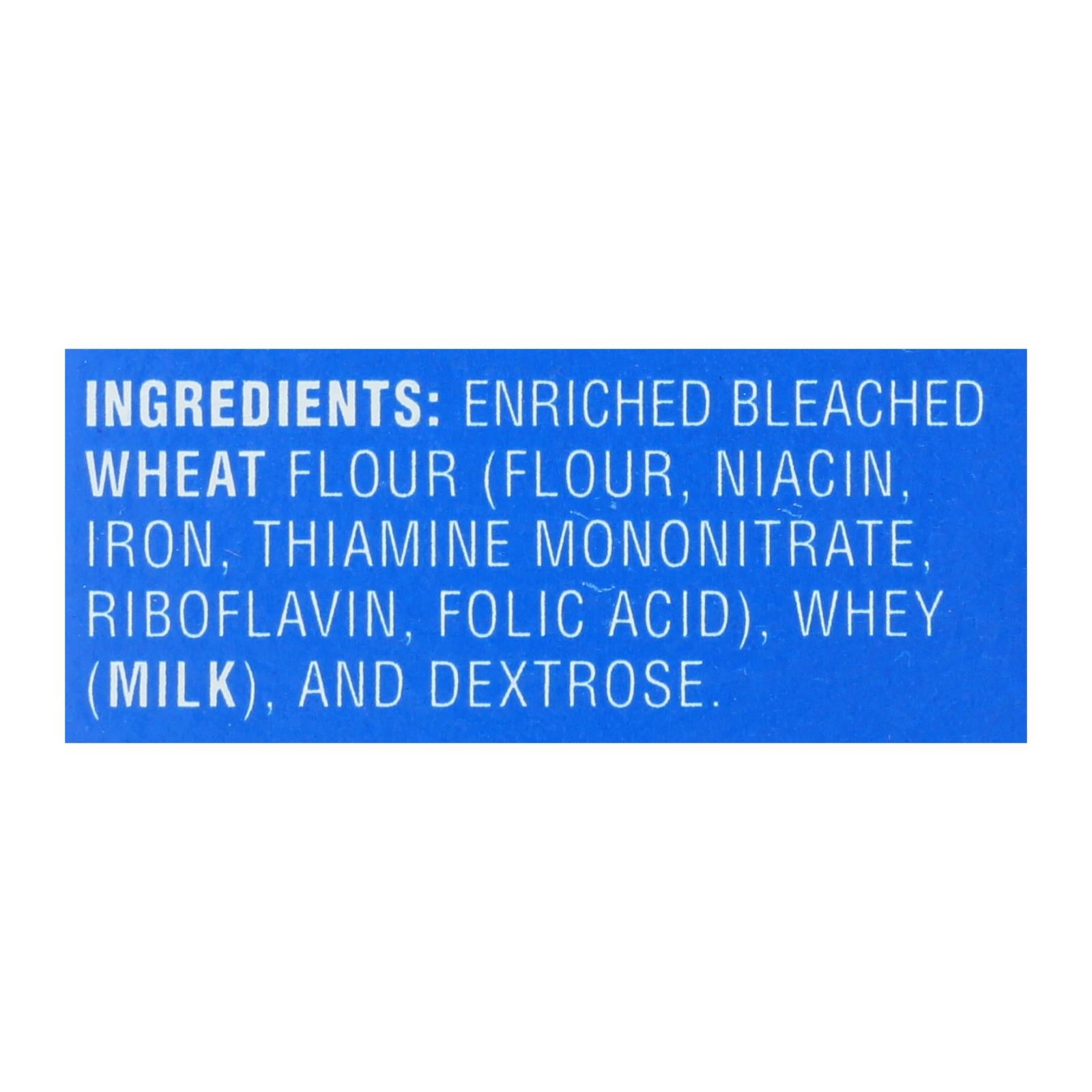 ingredients : enriched bleached wheat flour;flour;niacin;iron;thiamine mononitrate;riboflavin;folic acid;whey;milk;and dextrose
