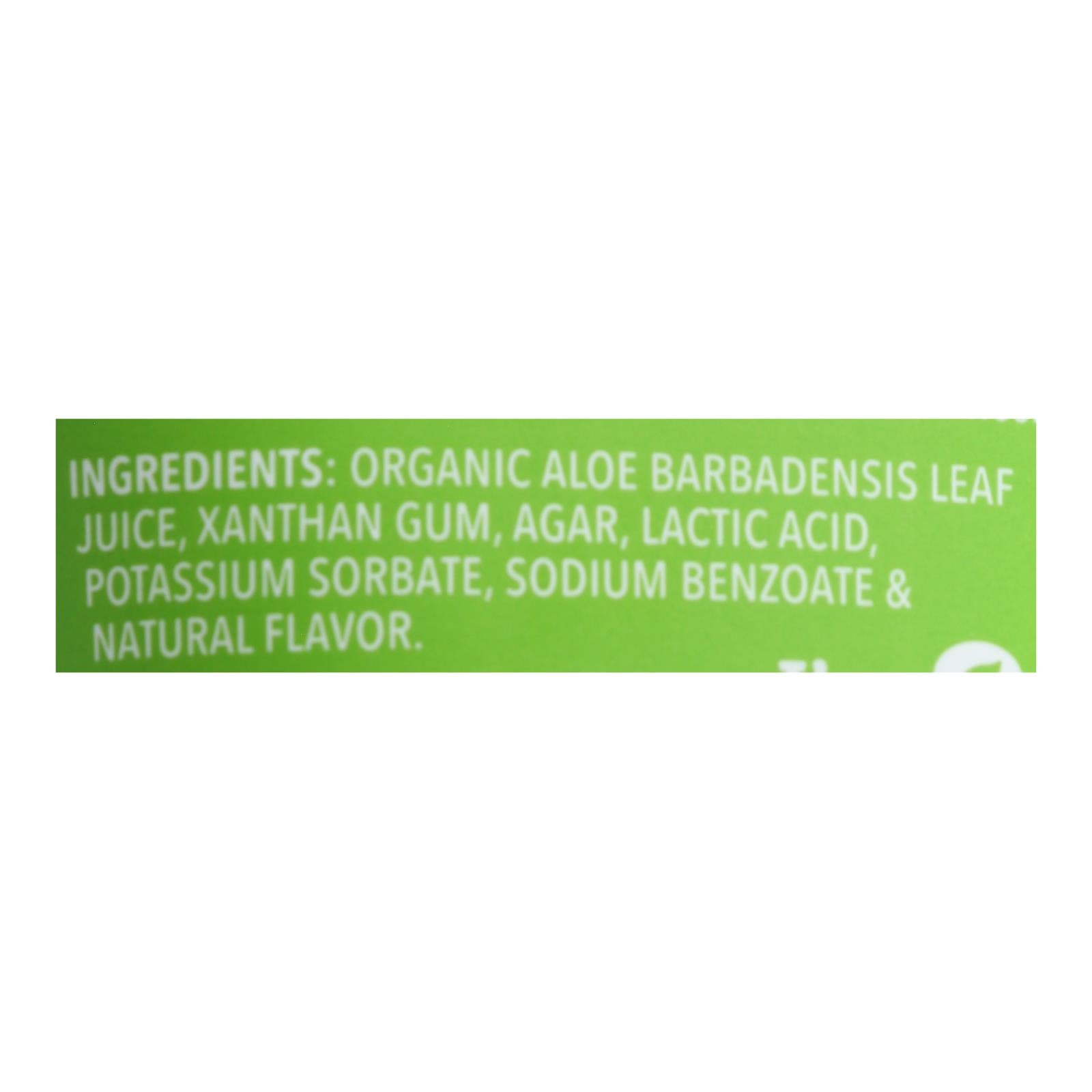 ingredients : organic aloe barbadensis leaf juice;xanthan gum;agar;lactic acid;potassium sorbate;sodium benzoate;& natural lemon vanilla flavor