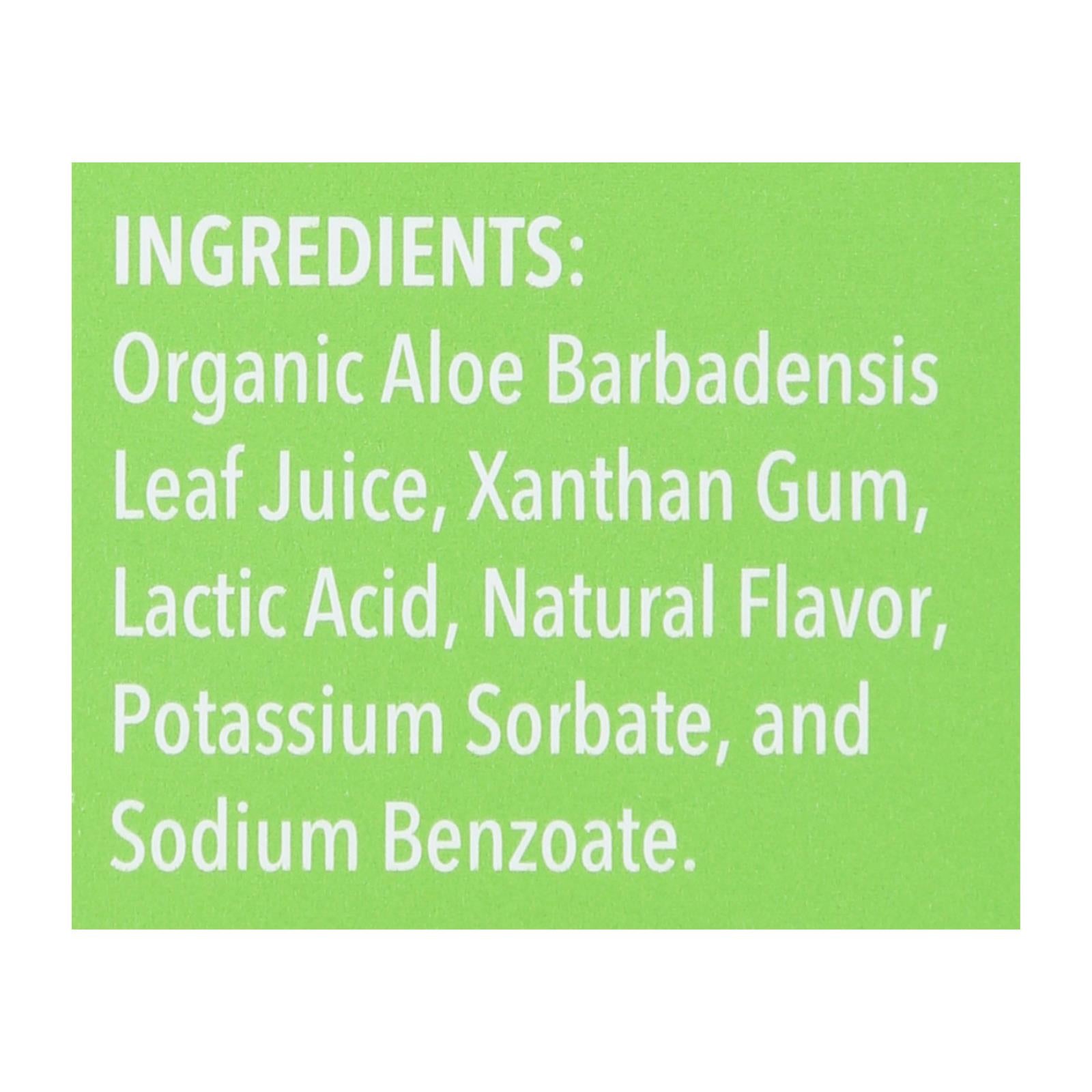 ingredients : organic aloe barbadensis leaf juice;xanthan gum;lactic acid;natural flavor;potassium sorbate;and sodium benzoate