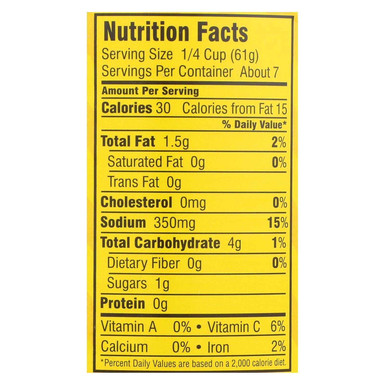 ingredients : water;green chile peppers;corn starch;canola oil;less than 2% of sugar;baker's yeast (yeast, salt, natural flavor);sea salt;dehydrated jalapeno;onion powder;spice;citric acid;dehydrated green bell peppers;garlic powder