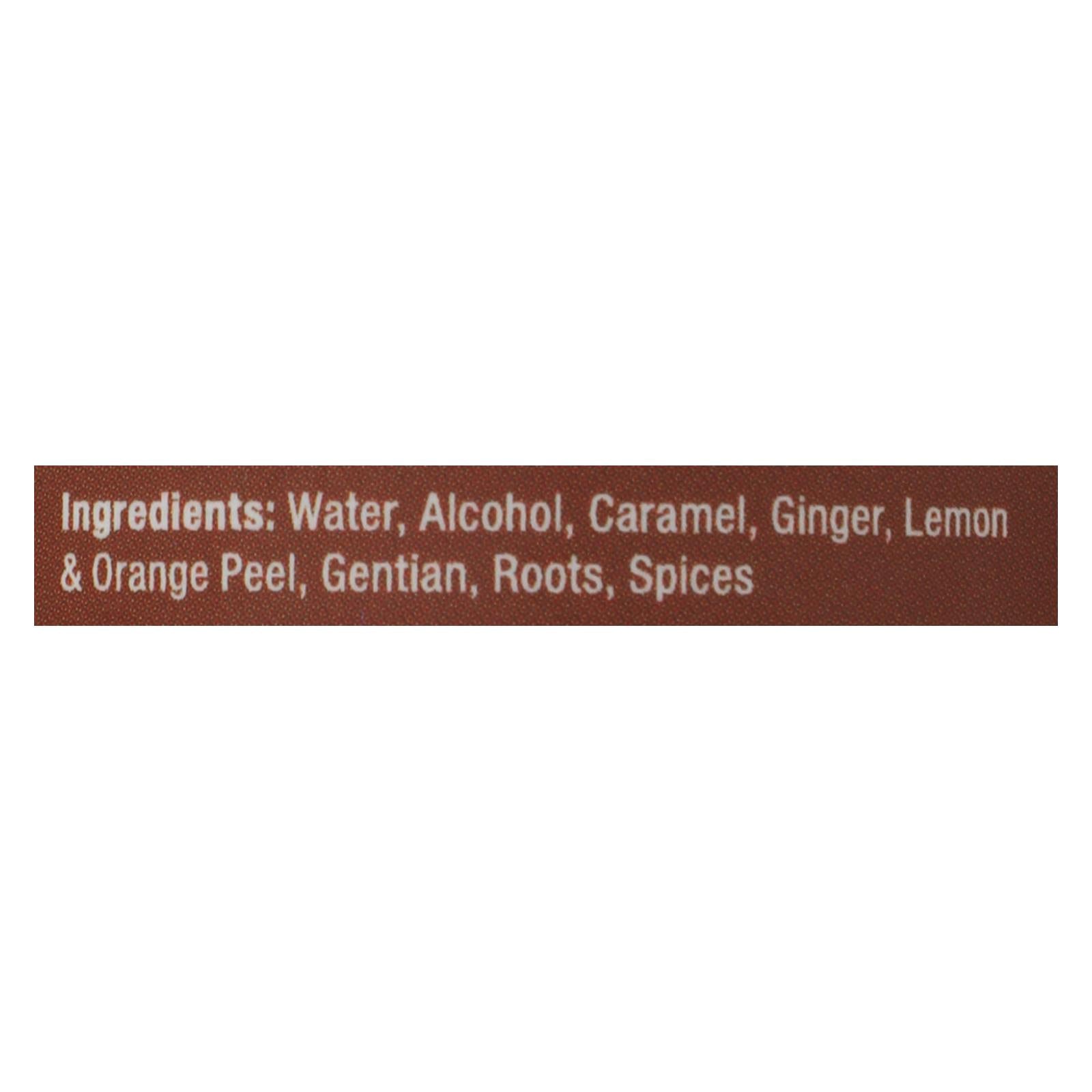 ingredients : water;alcohol;caramel;ginger;lemon & orange peel;gentian;roots;spices