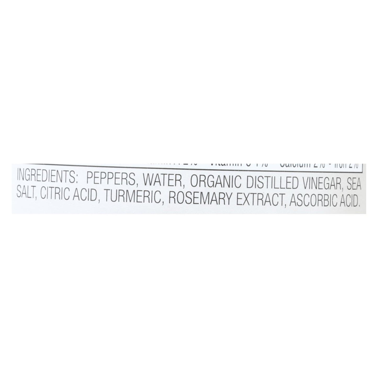 ingredients : peppers;water;organic distilled vinegar;sea salt;citric acid;turmeric;rosemary extract;ascorbic acid