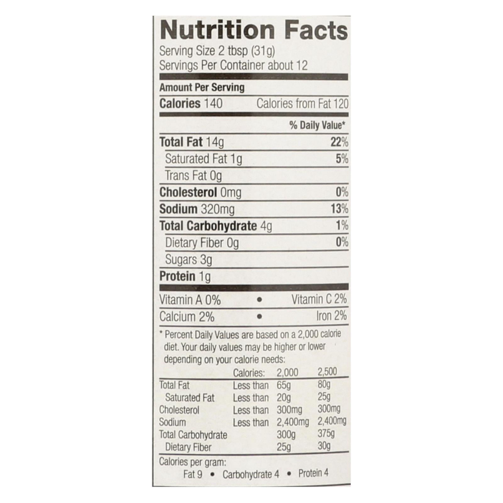 ingredients : expeller pressed canola oil;water;soy sauce (water, soybeans, wheat, salt);brown sugar;sesame seeds;distilled vinegar;salt;yeast extract;natural flavors;egg yolk;xanthan gum