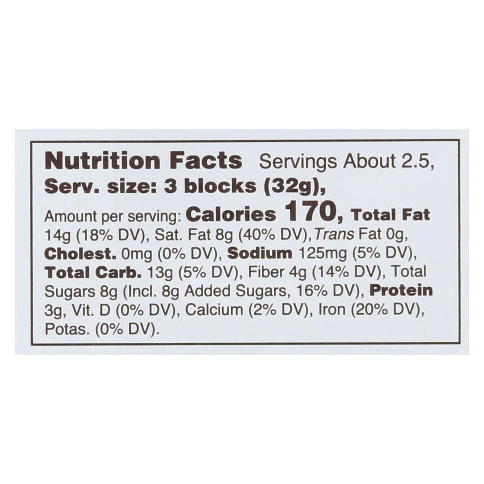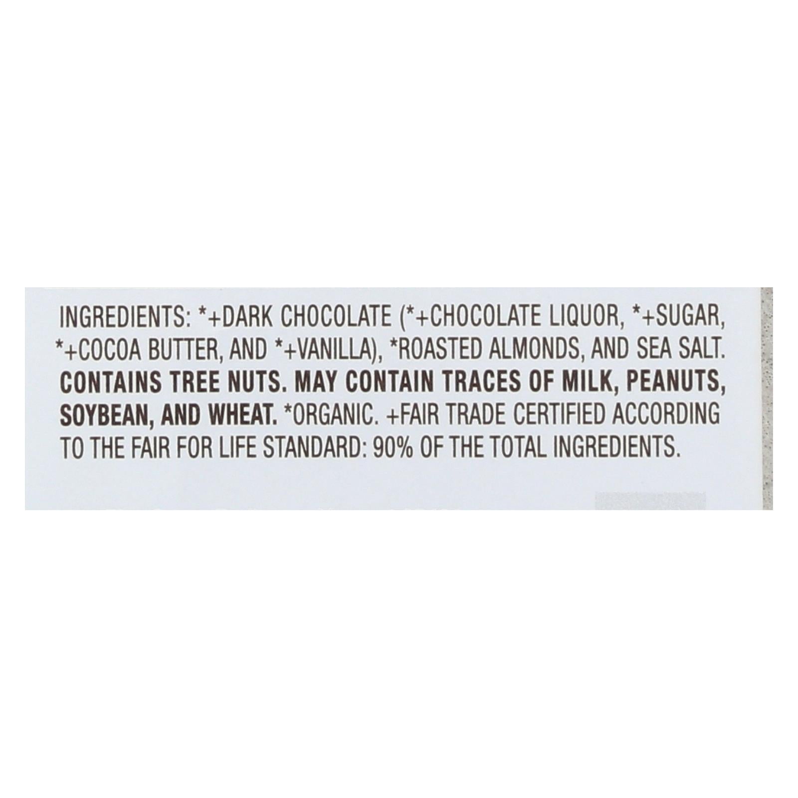 Lake champlain chocolate almonds & sea salt dark chocolate bar uses 72% cocoa chocolate for a slightly bitter, salty and sweet treat with the crunch of roasted almonds. This 3 oz. Chocolate is certified organic and contains conscientiously sourced ingredients that conform to the fair for life standards of fair trade. Each bar provides about 2.5 servings of iron- and fiber-rich chocolate.