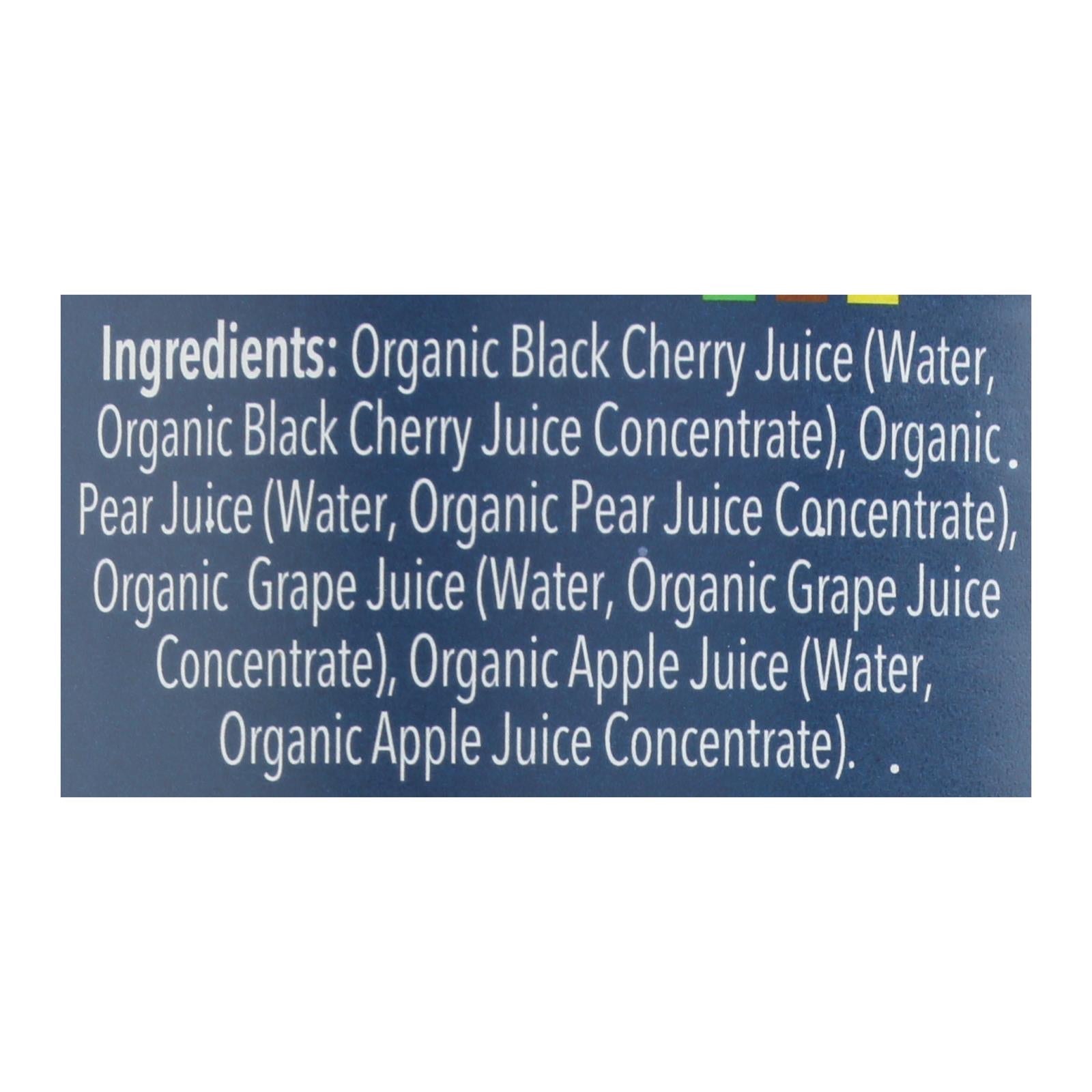 ingredients : organic black cherry juice (water, organic black cherry juice concentrate);organic;pear juice (water, organic pear juice concentrate);organic grape juice (water, organic grape juice concentrate);organic apple juice (water, organic apple juice concentrate)