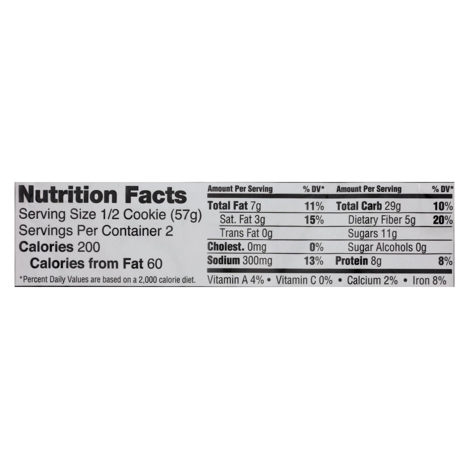 10 g fiber per cookie. 16 g protein per cookie. See nutrition information for sat. Fat content. Vegan. Non gmo project verified. Nongmoproject.org. Plant-based. Baked nutrition. A complete world of goodies. Live the complete life with us lenny & larry's. The complete package: 16 g protein per cookie; 10 g fiber per cookie; non-gmo project verified; no soy ingredients (manufactured in a facility that also processes peanut, tree nut, soy, milk and egg); no dairy ingredients (manufactured in a facility that also processes peanut, tree nut, soy, milk and egg); no egg (manufactured in a facility that also processes peanut, tree nut, soy, milk and egg); vegan; kosher; no high fructose corn syrup; no artificial sweeteners; 0 g sugar alcohols; sustainable palm oil. Lennylarry.com. Instagram. Facebook. Lennyandlarrys. Baked in usa.