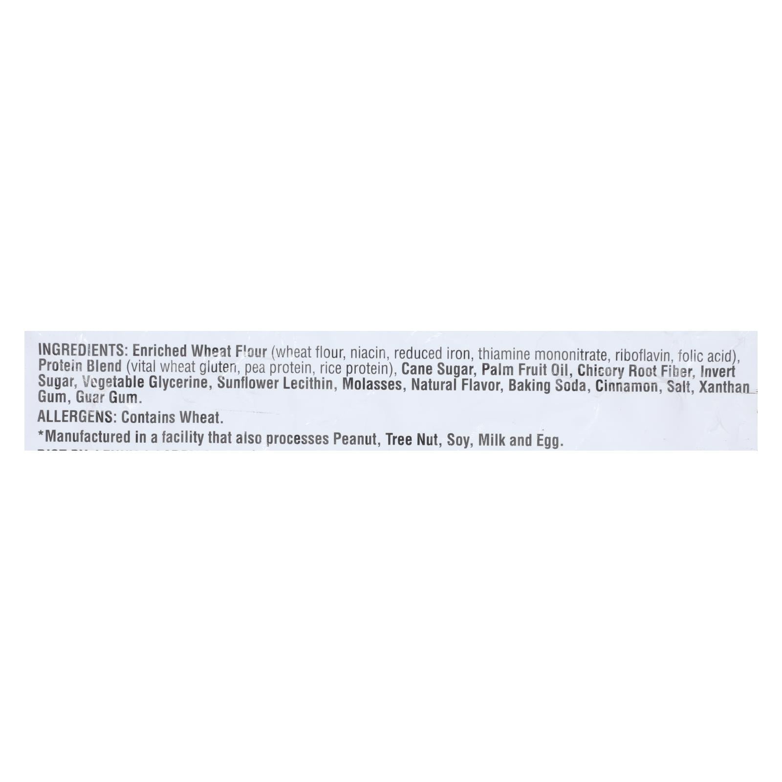 ingredients : enriched wheat flour;wheat flour;niacin;reduced iron;thiamine mononitrate;riboflavin;folic acid;protein blend;vital wheat gluten;pea protein;rice protein;cane sugar;palm fruit oil;chicory root fiber;invert sugar;vegetable glycerine;sunflower lecithin;molasses;natural flavor;baking soda;cinnamon;salt;xanthan gum;guar gum