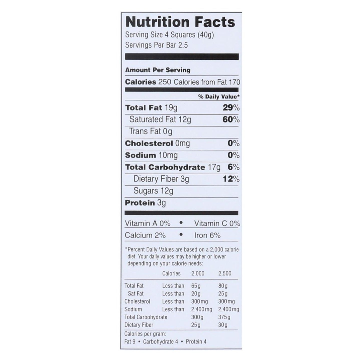 Lindt smooth dark chocolate bar offers a savory 70% cocoa treat. The luxury ingredients include chocolate, cocoa butter, sugar and bourbon vanilla beans. With 4 squares of chocolate as a single serving size, you'll get about 2.5 servings to this 3.5 oz. Bar. See the nutrition facts panel for allergens.