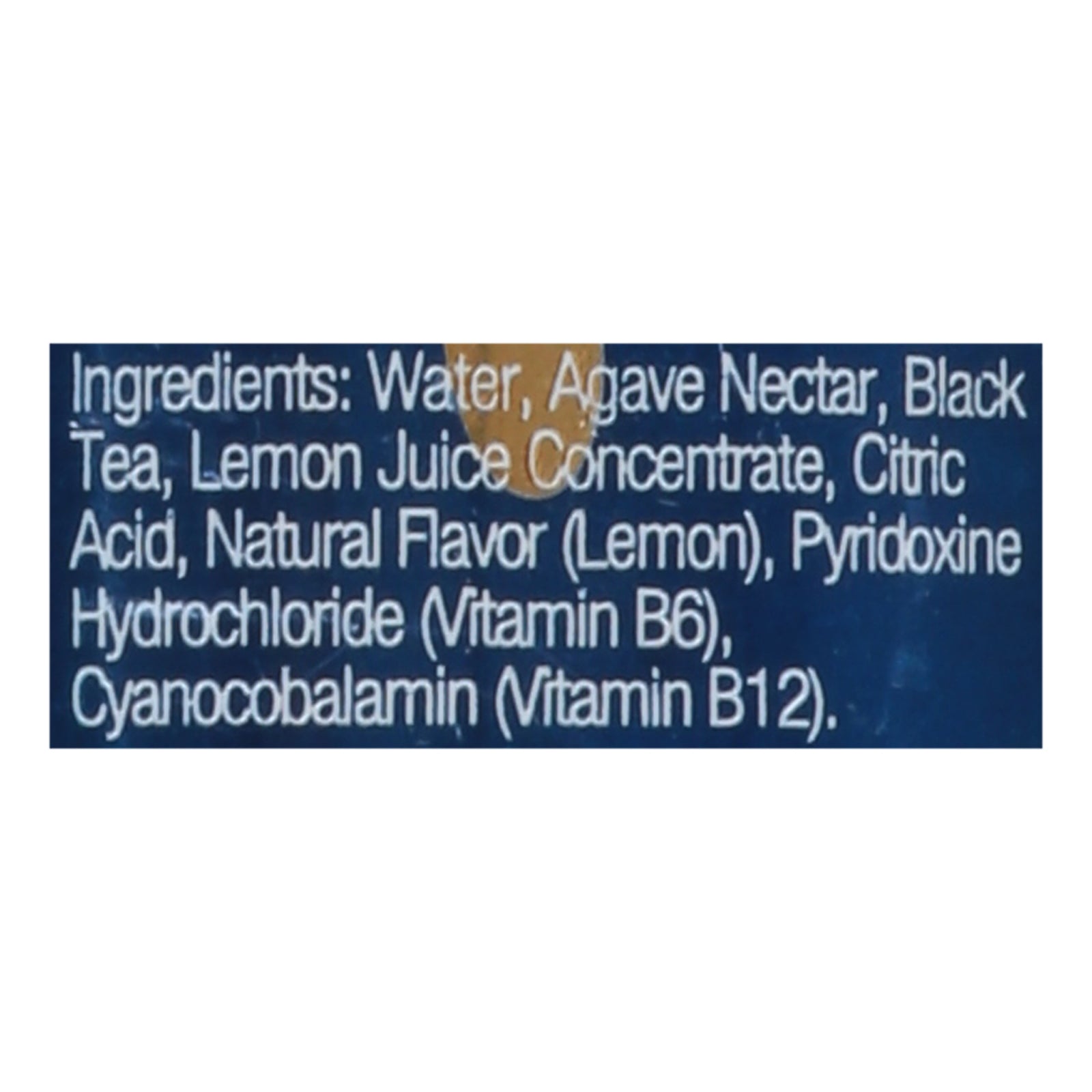 ingredients : water;agave nectar;black tea;lemon juice concentrate;citric acid;natural flavor (lemon);pyridoxine hydrochloride (vitamin b6);cyanocobalamin (vitamin b12)