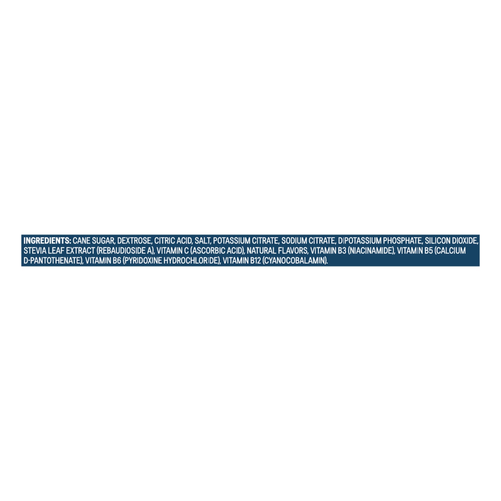 ingredients : pure cane sugar;dextrose;citric acid;salt;potassium citrate;sodium citrate;dipotassium phosphate;silicon dioxide;stevia leaf extract (rebaudioside a);vitamin c (ascorbic acid);natural flavors;vitamin b3 (niacinamide);vitamin b5 (d-calcium pantothenate);vitamin b6 (pyridoxine hydrochloride);vitamin b12 (cyanocobalamin)