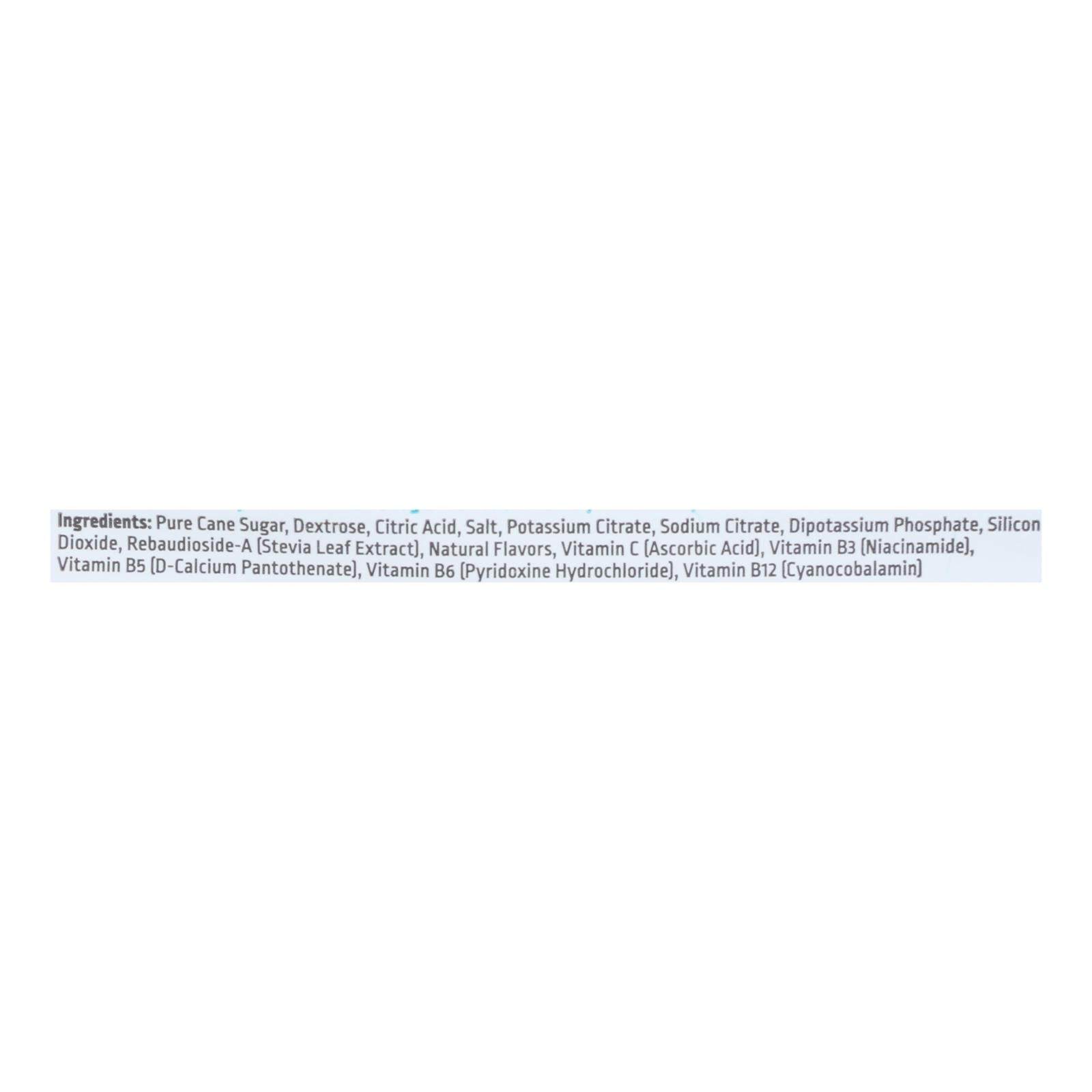 ingredients : pure cane sugar;dextrose;citric acid;salt;potassium citrate;sodium citrate;dipotassium phosphate;silicon dioxide;rebaudioside-a;stevia leaf extract;natural flavors;vitamin c;ascorbic acid;vitamin b3;niacinamide;vitamin b5;d-calcium pantothenate;vitamin b6;pyridoxine hydrochloride;vitamin b12;cyanocobalamin