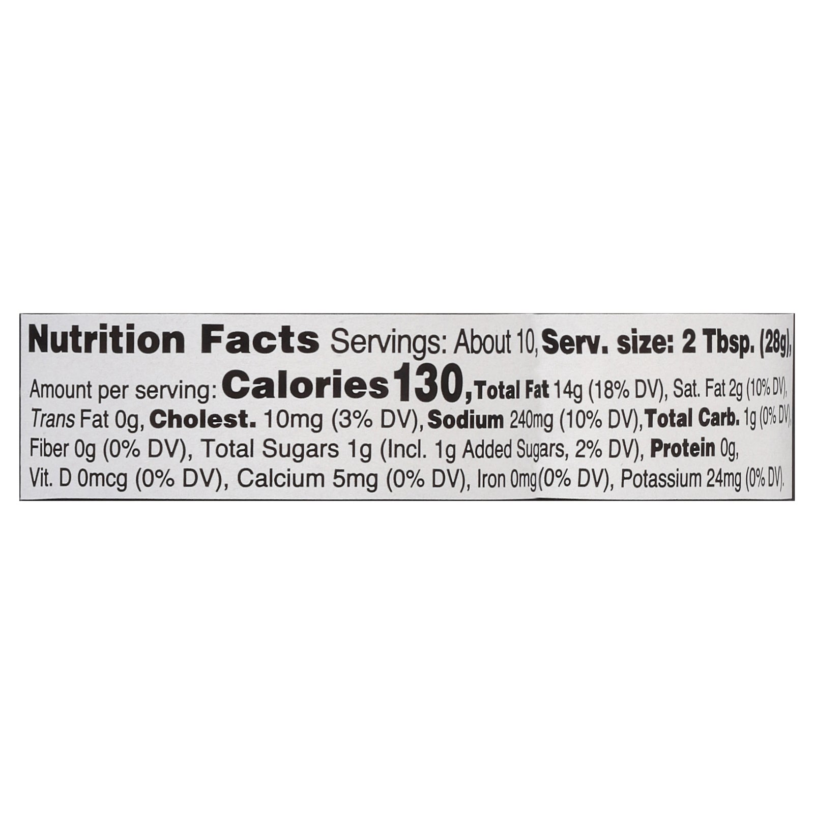 Louisiana tartar sauce is made with real relish, onion and lemon for a zesty zing when you use it with fried fish or other seafood. When you use the recommended 2 tbsp. Serving size, you'll get about 10 servings per 10.5 oz. Bottle. Each serving is 130 calories and has 0 g. Of trans fat, making it a healthful choice.