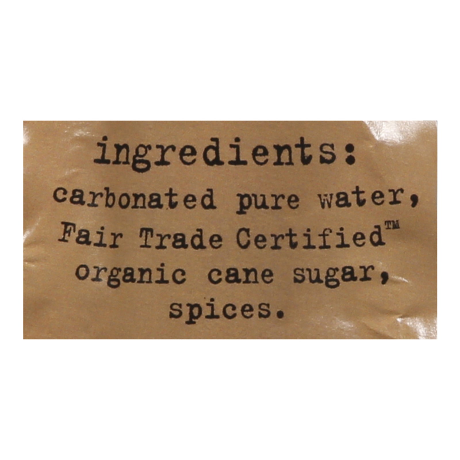 ingredients : carbonated pure water;fair trade certified organic cane sugar;spices