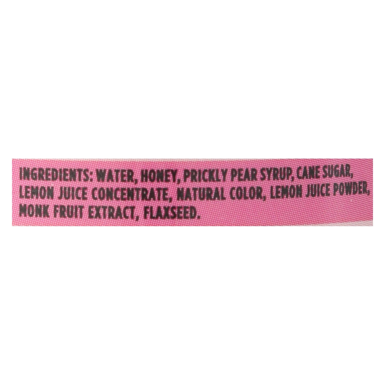 ingredients : water;honey;prickly pear syrup;cane sugar;lemon juice concentrate;natural color;lemon juice powder;monk fruit extract;flaxseed