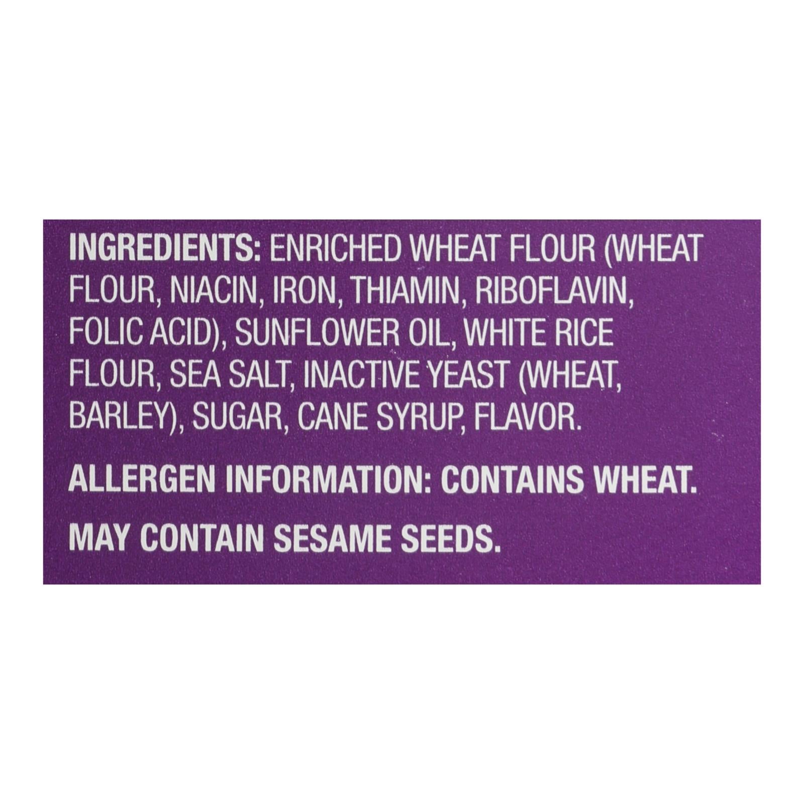ingredients : enriched wheat flour (wheat flour, niacin, iron, thiamin, riboflavin, folic acid);sunflower oil;white rice flour;sea salt;inactive yeast (wheat, barley);sugar;cane syrup;flavor