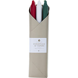 12" eurpoean tapers (6 pack- 2 crimson, 2 pure white, 2 huter green)