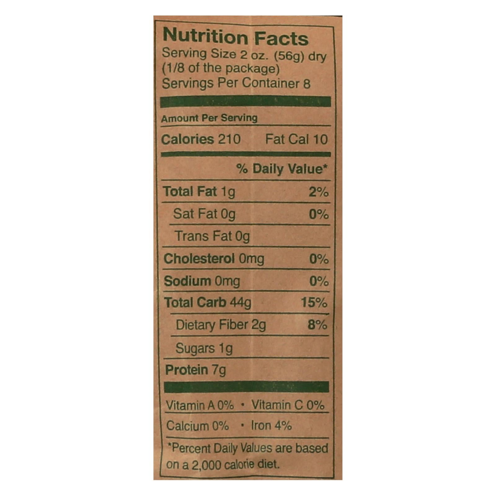 Montebello organic orecchiette pasta is imported from italy, created using old world techniques for a distinctive flavor and texture. Our 16 oz. Bag contains usda organic certified, non-gmo pasta made from organic durum wheat semolina. Each 2 oz. Serving contains 210 calories and 2 g. Of dietary fiber.