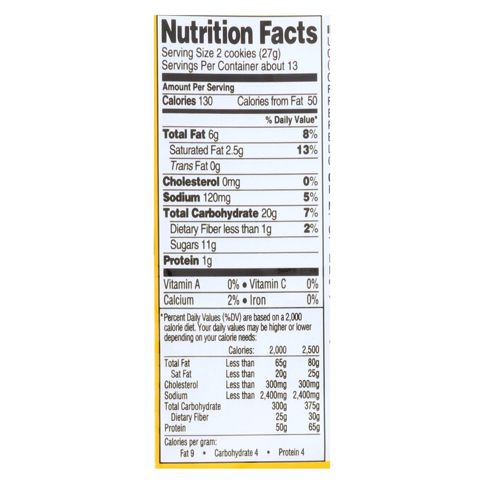 Newman’s own newman o’s, vanilla vanilla creme are a delicious and convenient snack option. Made with natural ingredients, these cookies are free of unnatural and unnecessary additives. This product is kosher, organic and does not contain artificial colors, flavors or preservatives. Each bag of newman’s own newman o’s, vanilla vanilla creme weighs 13 oz. With 13 servings per container and 130 calories per serving.