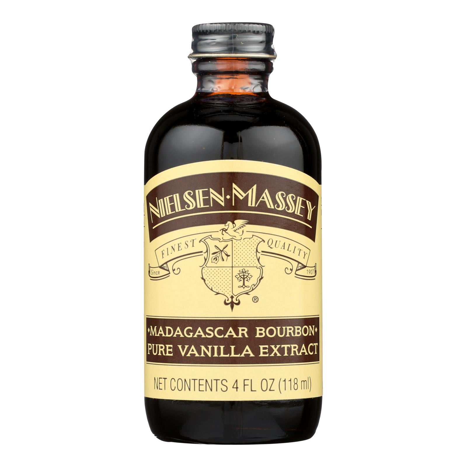 Nielsen-massey madagascar bourbon pure vanilla extract is certified gluten-free and certified kosher-parve. Each 4 fl. Oz. Bottle of our vanilla extract is made from ingredients including water, alcohol, sugar and vanilla bean extractives. Our madagascar bourbon vanilla extract features a sweet, creamy flavor.