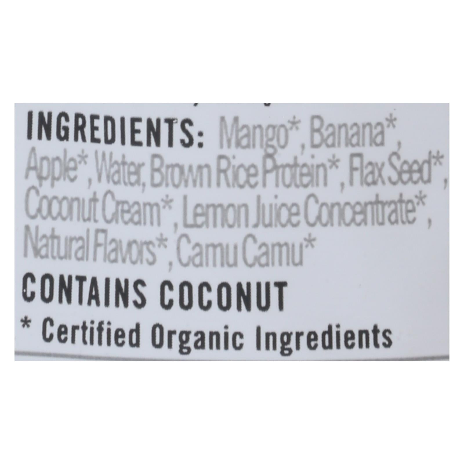 ingredients : mango;banana;apple;water;brown rice protein;flax seed;coconut cream;lemon juice concentrate;natural flavors;camu camu