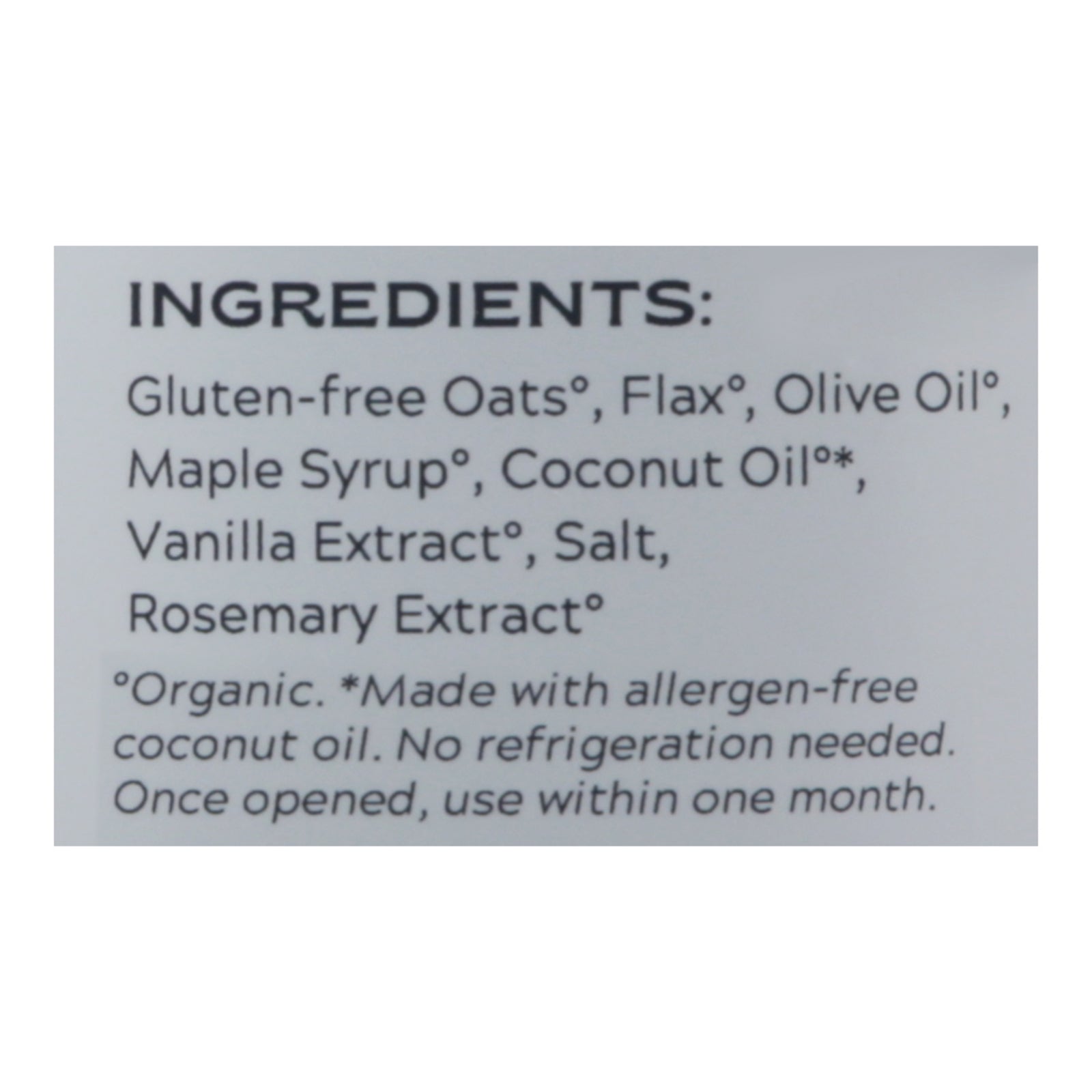 ingredients : gluten-free oats°;olive oil°;maple syrup°;coconut oil°;vanilla extract°;rosemary extract°;salt