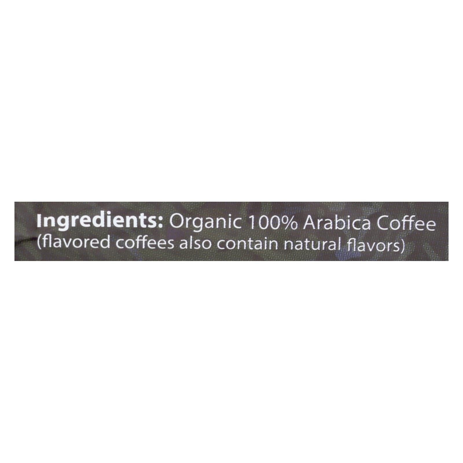 ingredients : organic 100% arabica coffee;flavored coffees also contain natural flavors