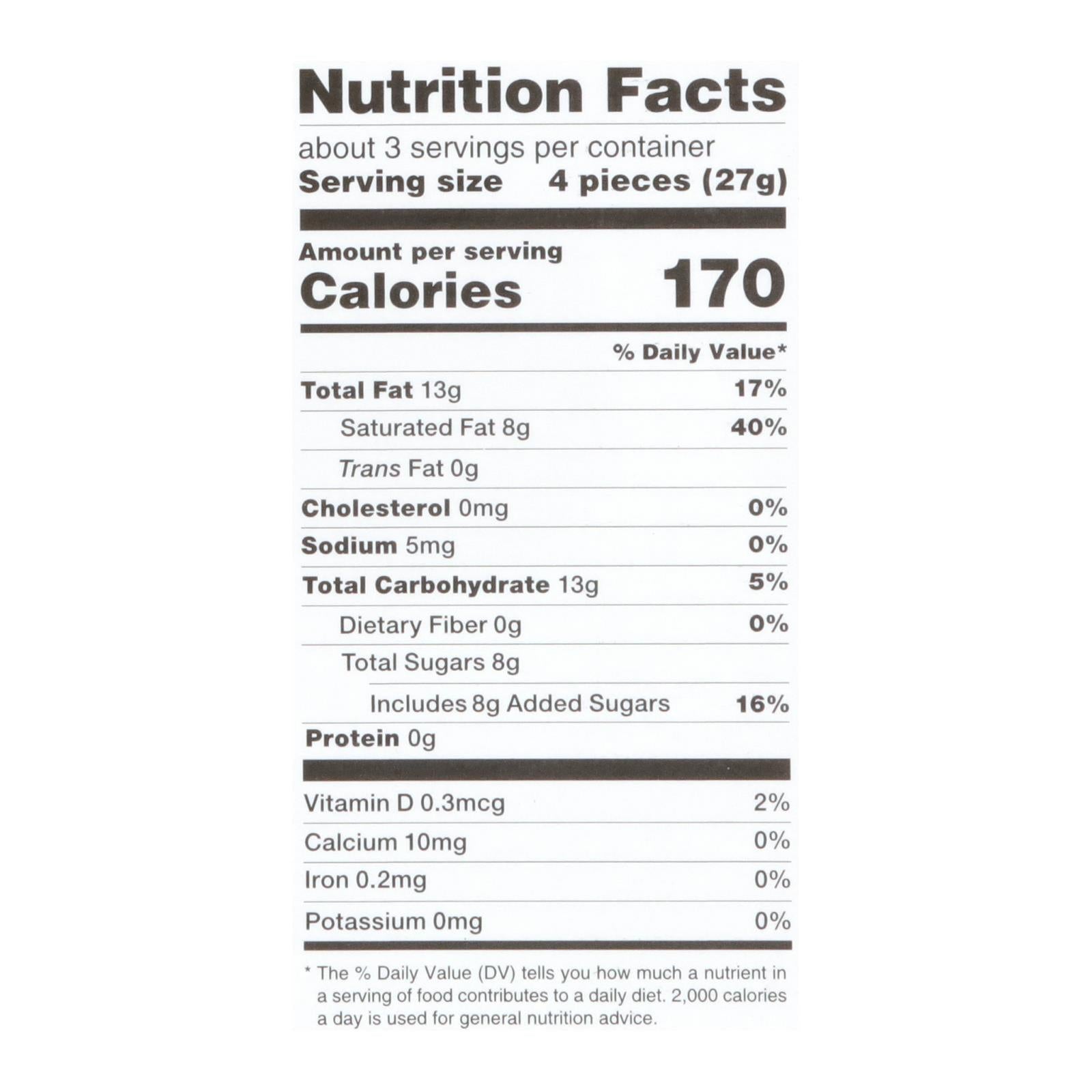 ingredients : organic cocoa butter;organic cane sugar;organic tapioca starch;organic rice syrup solids;organic rice maltodextrin;organic vanilla and salt