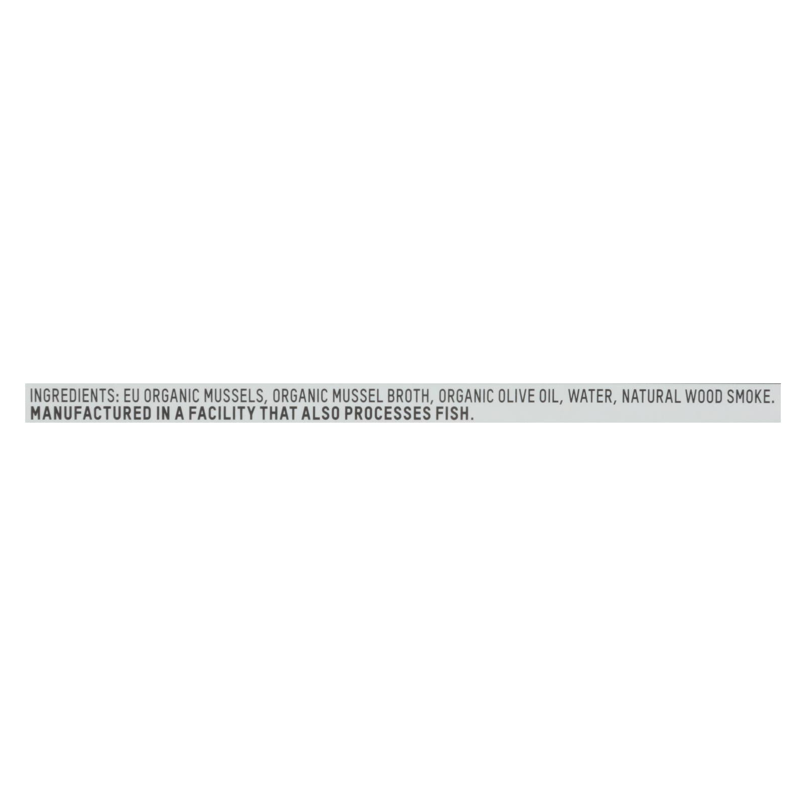 ingredients : eu organic mussels;organic mussel broth;organic olive oil;water;natural wood smoke