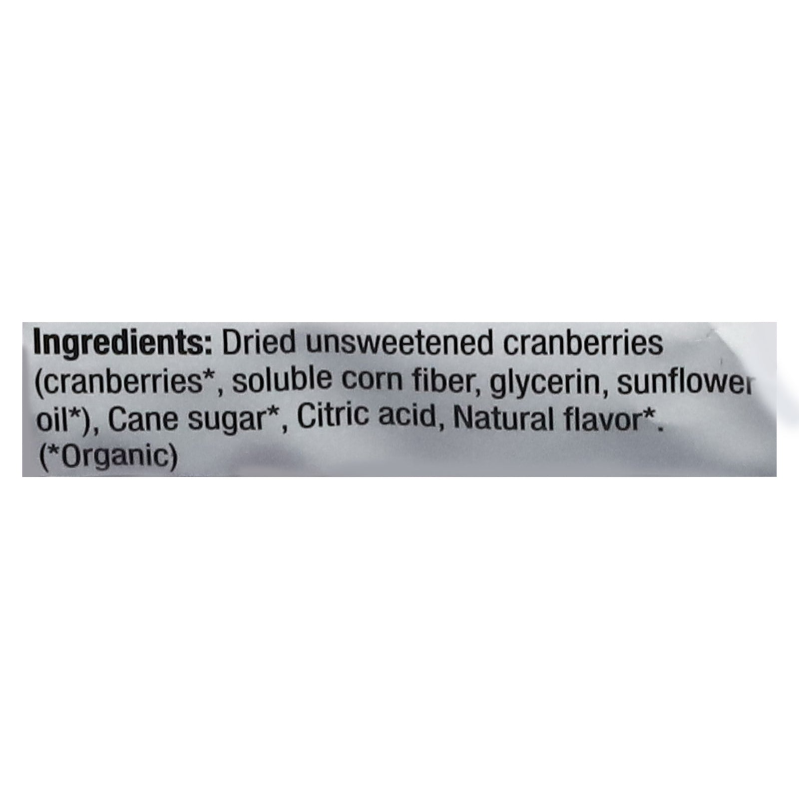 ingredients : dried unsweetened cranberries (cranberries*, soluble corn fiber, glycerin, sunflower oil*);cane sugar;citric acid;natural flavor